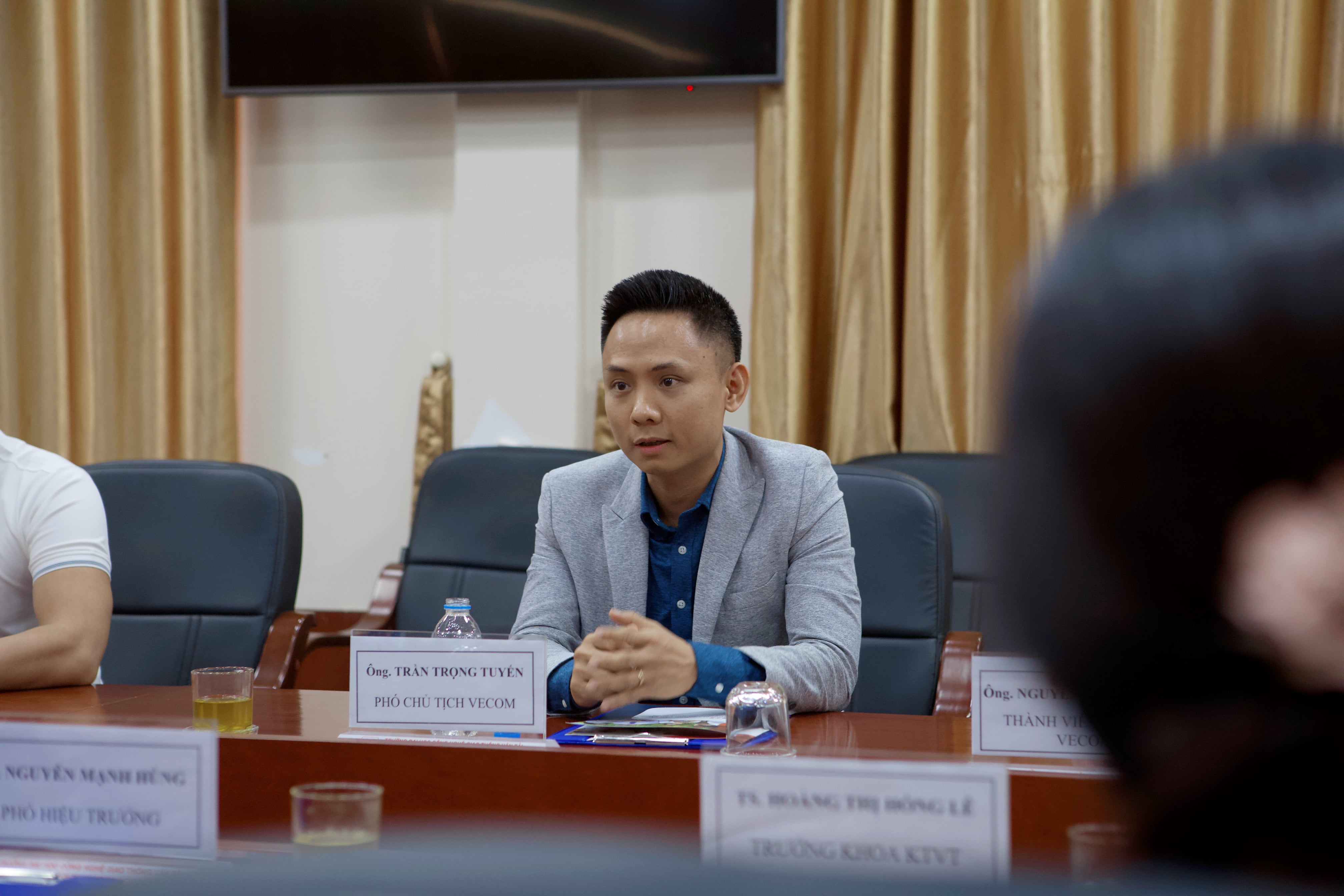 Ông Trần Trọng Tuyến - Phó Chủ tịch VECOM nhận định: "Trong năm tới, nhu cầu về nguồn nhân lực TMĐT sẽ tăng 25-30%... Vì vậy, việc đẩy mạnh hoạt động kết nối, hợp tác giữa VECOM và UTT là bước đệm lớn, mở ra cơ hội thực tập cho SV đến gần hơn với DN"