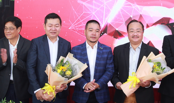 Đại diện Liên minh DTS, MCV Group và VECOM trao hoa lưu niệm tại lễ ký kết hợp tác. Ảnh: MCV Group.
