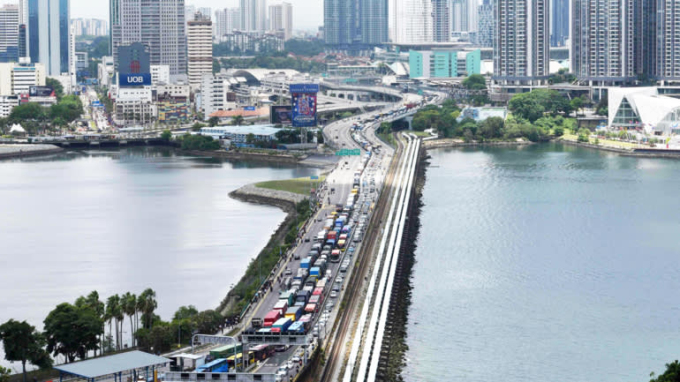Các phương tiện ùn tắc trên con đường từ Malaysia vào Singapore trước khi đóng cửa biên giới vào tháng 3/2020. Ảnh: AFP