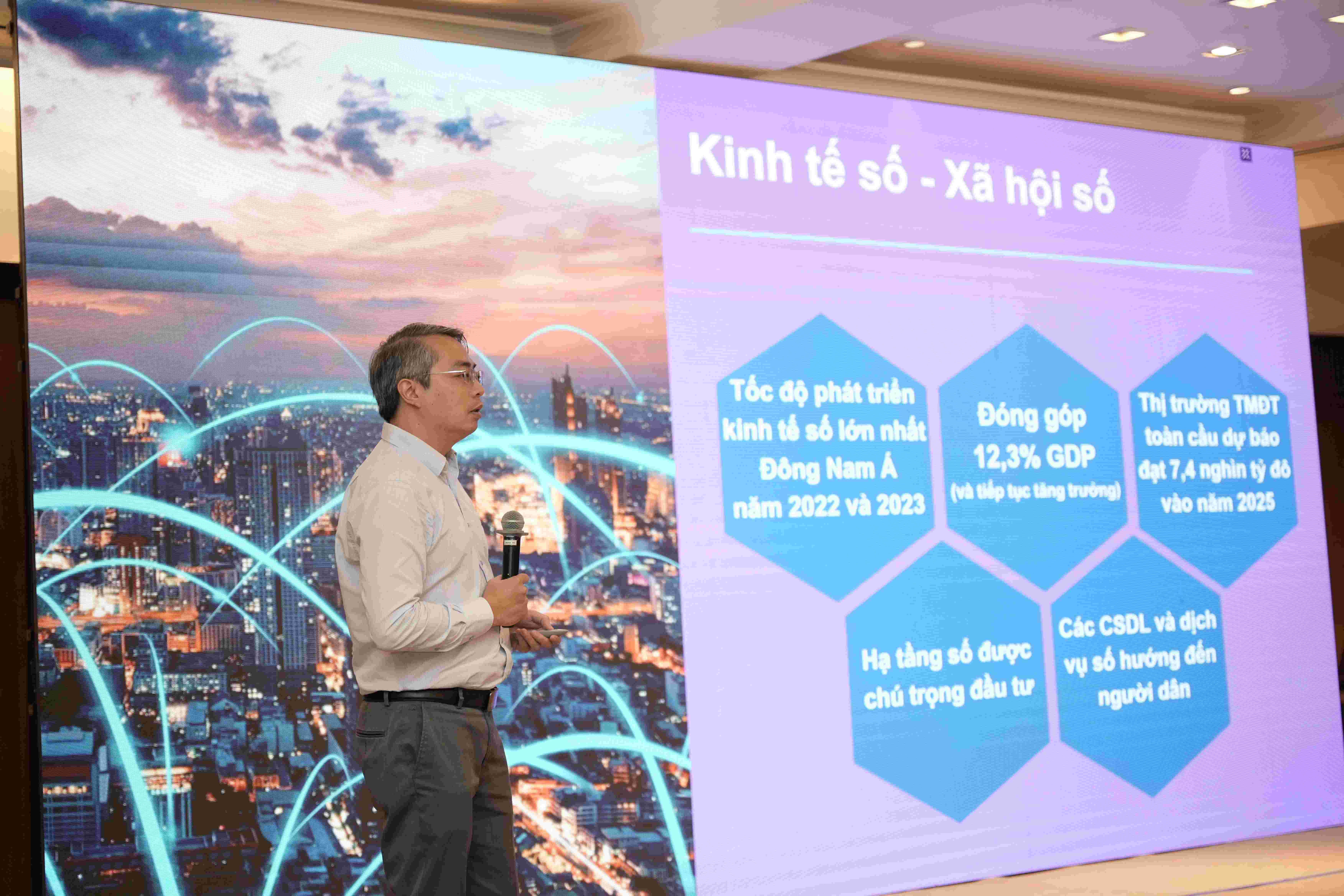 Diễn đàn TMĐT xuyên biên giới 2024 khai mạc với sự tham dự của PGS. TS Trần Minh Tuấn - Vụ trưởng Vụ Kinh Tế số và Xã hội số, Bộ Thông tin và Truyền thông; ông Trần Thanh Hải - Phó Cục trưởng, Cục Xuất nhập khẩu, Bộ Công Thương; cùng các đại diện từ Amazon Global Selling Việt Nam, Hiệp hội TMĐT Việt Nam, Cục Thương mại điện tử và Kinh tế số.