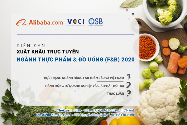 Nhận thức được vai trò và tầm quan trọng của việc ứng dụng Thương mại điện tử trong tăng trưởng xuất khẩu ngành hàng F&B, Phòng Thương mại và Công nghiệp Việt Nam (VCCI) phối hợp với Tập đoàn Thương mại điện tử Alibaba.com và Công ty Cổ phần Đầu tư và Công nghệ OSB – Đại lý Ủy quyền Chính thức của Alibaba.com tại Việt Nam từ năm 2009, đồng tổ chức “Diễn đàn xuất khẩu trực tuyến ngành hàng Thực phẩm và Đồ uống 2020”.