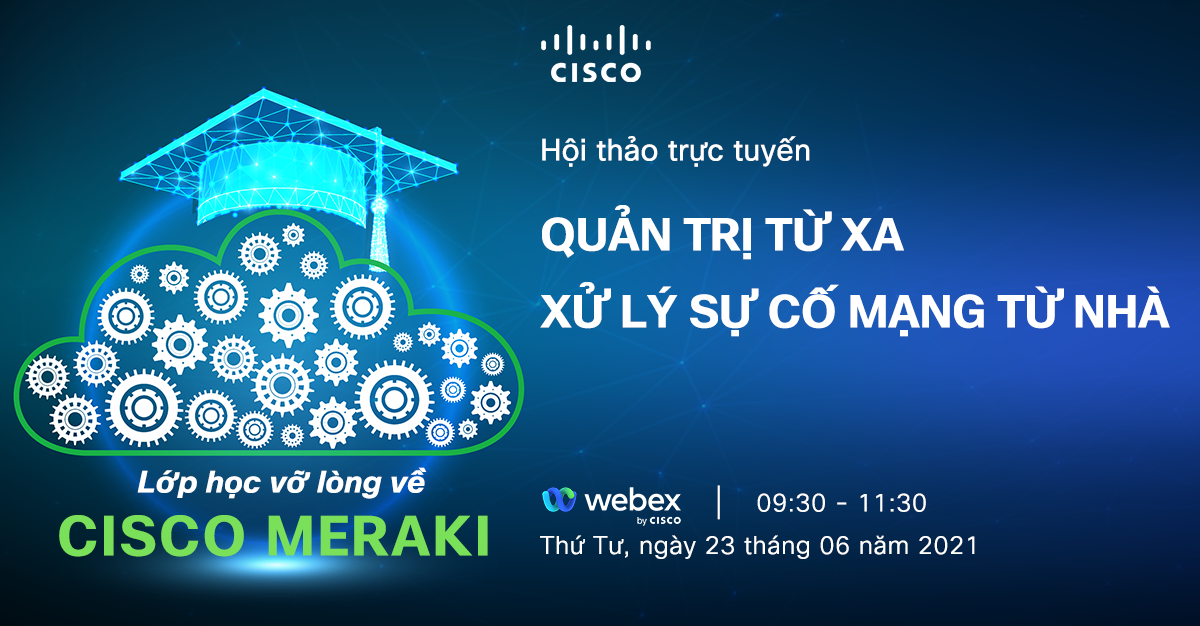 Để giúp cho Khách hàng nắm rõ chi tiết những kiến thức cơ bản nhất về Cisco Meraki, Cisco Việt Nam trân trọng kính mời quý vị tham dự Lớp học vỡ lòng về CISCO MERAKI với chủ đề “Quản trị từ xa – Xử lý sự cố mạng từ nhà” vào lúc 09:30 – ngày 23.06.2021 sắp tới.