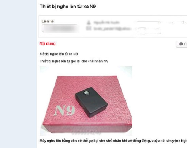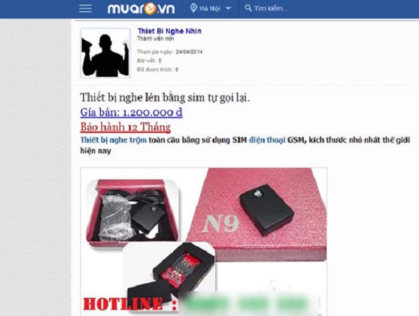 Ngày 30/6/2014, tại website Muare.vn (thuộc quản lý của Công ty Cổ phần Truyền thông Việt Nam, trụ sở tại Tam Trinh, Hà Nội) có đăng thông tin mời chào mua thiết bị nghe lén từ xa sử dụng SIM GSM điện thoại cho một doanh nghiệp có địa chỉ tại ngõ 278 Tôn Đức Thắng, Hà Nội kinh doanh.