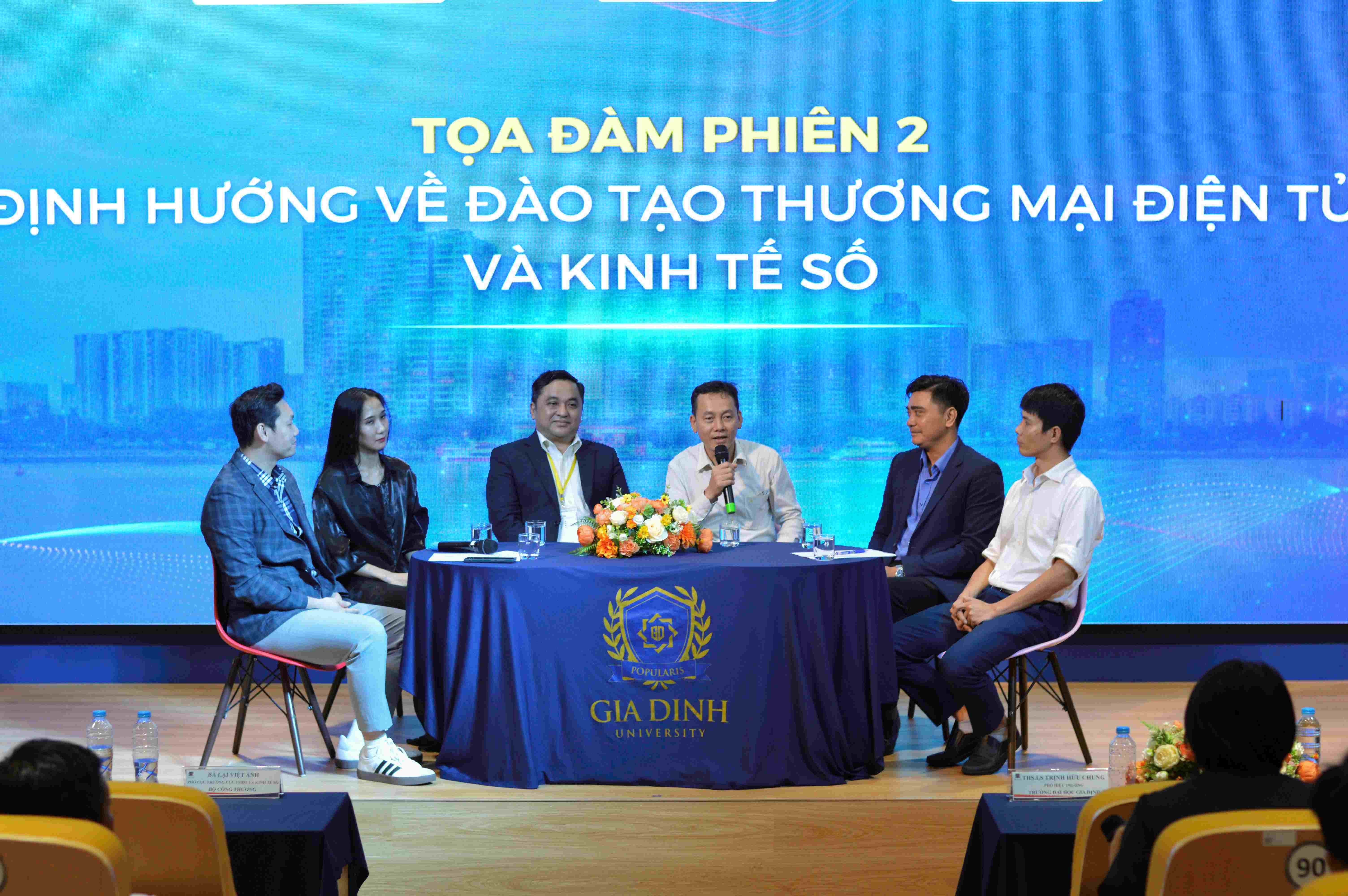 Hội thảo có sự tham dự của TS. Lê Hoàng Oanh - Cục trưởng Cục Thương mại điện tử và Kinh tế số (TMĐT và KTS), Bộ Công Thương; ông Bùi Trung Kiên, Phó Chủ tịch Hiệp hội TMĐT Việt Nam; PGS. TS. Lê Thái Phong, Trưởng Khoa Quản trị Kinh doanh, Trường Đại học Ngoại thương; cùng các đại biểu đến từ Cục TMĐT và KTS, Hiệp hội TMĐT Việt Nam, trường Đại học Ngoại thương và gần 200 giảng viên đến từ các trường đại học, cao đẳng toàn quốc.