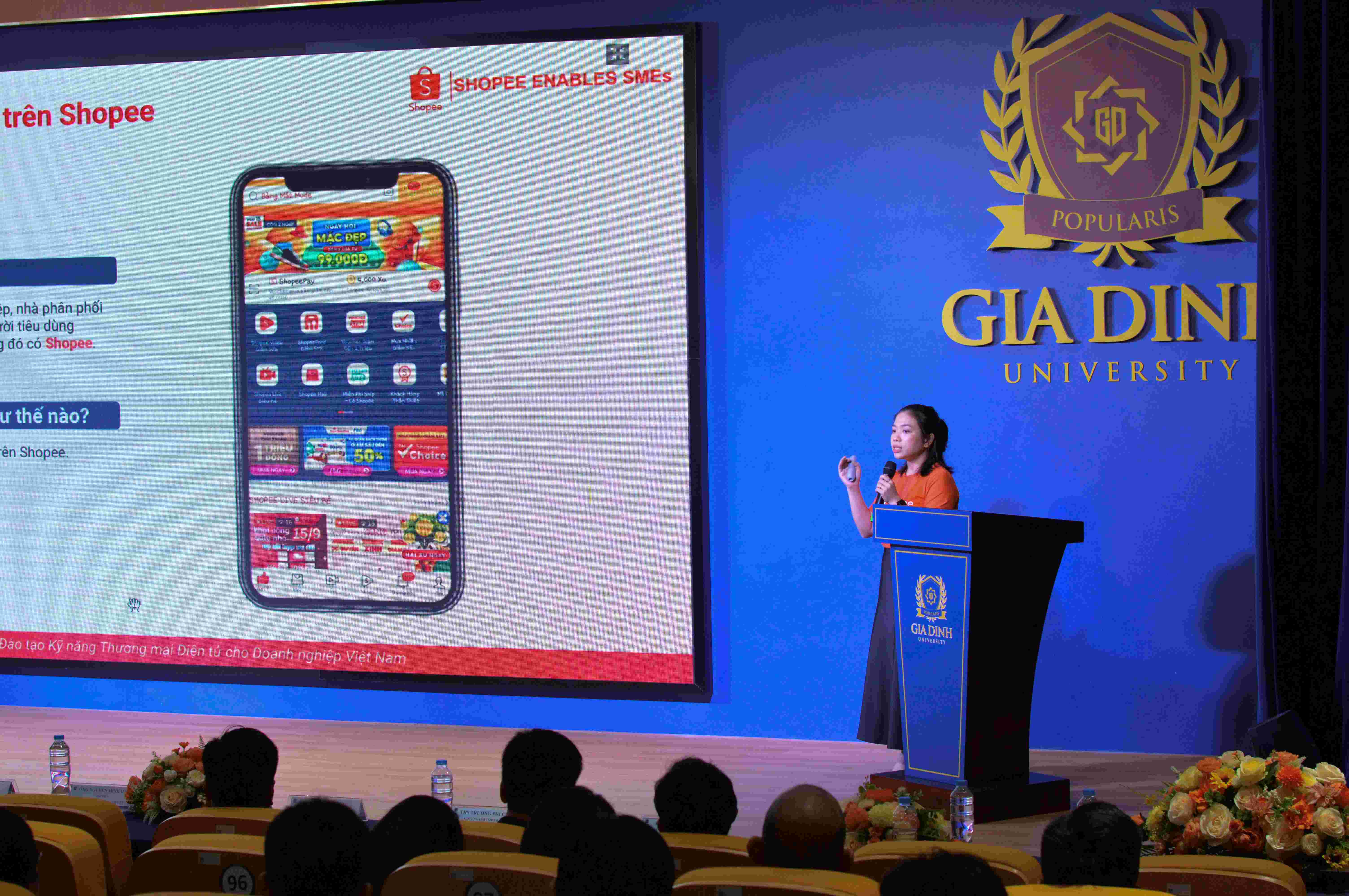 Phát biểu tại Hội thảo, bà Nguyễn Lê Ly Na - Quản lý bộ phận Seller Engarement Shopee Việt Nam nhấn mạnh, không chỉ tạo ra một nền tảng TMĐT với trải nghiệm mua sắm an toàn và thú vị, thu hút hàng triệu khách hàng mỗi ngày, Shopee còn đóng góp tích cực vào sự phát triển của nền kinh tế số trong khu vực. Đặc biệt, Shopee luôn tích cực kết nối với các trường đại học và Cục TMĐT và KTS để hỗ trợ đào tạo, nâng cao kỹ năng cho các doanh nhân trẻ và sinh viên. Bà Nguyễn Lê Ly Na tin tưởng, việc hợp tác này sẽ góp phần phát triển nguồn nhân lực chất lượng cao, đồng thời thúc đẩy sự đổi mới và sáng tạo trong lĩnh vực TMĐT tại Việt Nam thời gian tới.