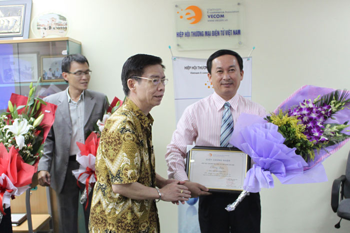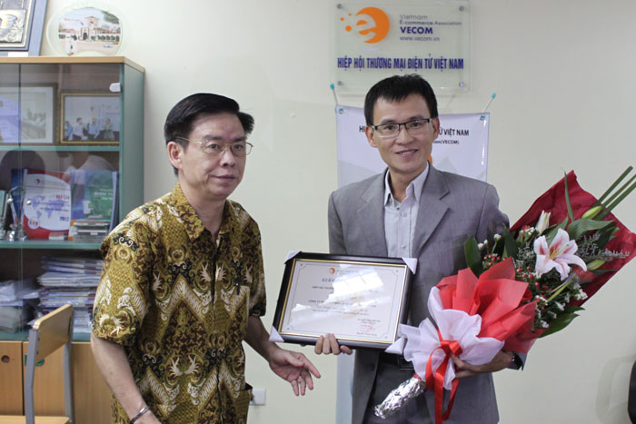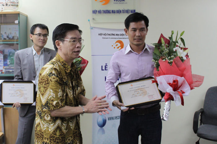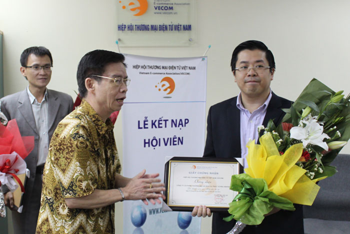 Ông Đào Gia Dương, đại diện Lazada và OfficeFab nhận giấy chứng nhận hội viên