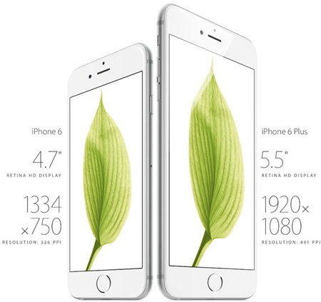 Apple đã vượt qua chính mình trong cuôc đua tăng chất lượng màn hình cho iPhone. “Quả táo” đã nâng cấp cho iPhone 6 và iPhone 6 Plus bằng màn hình Retina HD với tầm nền IPS siêu mỏng, đạt mật độ điểm ảnh 326ppi cho góc nhìn rộng hơn đối với phiên bản iPhone 6. Trong khi đó, iPhone 6 Plus có màn hình 5,5 inch, độ phân giải 1.080 x 1.920 pixel cho mật độ điểm ảnh cao hơn với 401ppi.