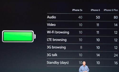 Tuy vậy, cuối cùng, Apple đã cố gắng khắc phục yếu điểm của mình trên thế hệ iPhone 6 và iPhone 6 Plus. Apple cho biết iPhone 6 có thể gọi điện liên tục trong 14 tiếng, và iPhone 6 Plus có thể đàm thoại trong 24 tiếng. Tuy nhiên, đó chỉ là con số lý thuyết. Thực tế sẽ chứng minh sau khi Apple bán ra thị trường sản phẩm này từ ngày 19/9 tới.