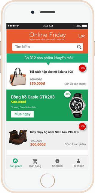 Bên cạnh phiên bản website dành cho máy tính PC, để chuẩn bị cho Ngày mua sắm trực tuyến mùa thu, Ban tổ chức còn rất chú trọng vào việc xây dựng app trên di động. Hiện App OnlineFriday cho IOS và Android đơn giản, tiện lợi vừa ra mắt sẽ phục vụ khách hàng tốt hơn khi mua sắm qua di động.