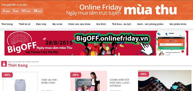 Ban tổ chức Ngày mua sắm trực tuyến mùa thu vừa giới thiệu giao diện website chính thức của chương trình. Giao diện này được hiển thị từ ngày Thứ hai (24/8 tới) tại địa chỉ http://www.onlinefriday.vn. Đây là nơi người dùng có thể tiếp cận trực tiếp với các sản phẩm, chương trình khuyến mại trong Ngày mua sắm trực tuyến Mùa thu (28/8) tới cũng như chương trình chính thức vào cuối năm (4/12).