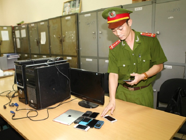 Tang vật Công an quận Hoàng Mai thu giữ được của các đối tượng trong đường dây cá độ bóng đá trên mạng Internet xuyên quận, huyện thuộc TP.Hà Nội và tỉnh Bắc Ninh