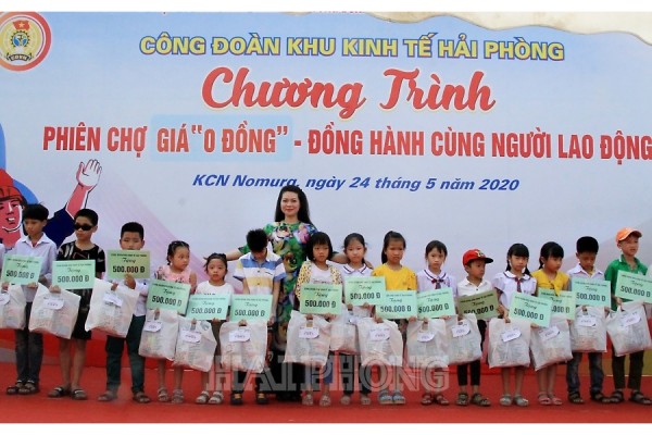 Hướng tới mục tiêu “Không bỏ ai lại phía sau” như lời kêu gọi của Thủ tướng Chính phủ Nguyễn Xuân Phúc, hưởng ứng Tháng Công nhân năm 2020 và hướng tới kỷ niệm 15 năm thành lập Công đoàn Khu Kinh tế, sáng 24-5, tại Khu công nghiệp Nomura, Công đoàn Khu Kinh tế Hải Phòng tổ chức Phiên chợ công nhân giá “0 đồng” – đồng hành công nhân lao động năm 2020. Đây là một trong những hoạt động thể hiện sự quan tâm, chăm lo đến con em công nhân lao động nhà trọ, và công nhân lao động khó khăn nhân Ngày Quốc tế thiếu nhi 1-6 năm nay.