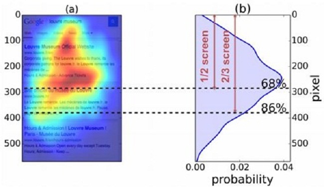 Như hình ảnh cho thấy, người dùng dành 68% sự chú ý cho phần trung tâm, phần chính giữa phía trên và dành 86% cho 2/3 nội dung phía trên. Những thứ bên dưới thì ít được lưu tâm hơn.