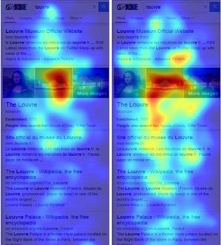Kết quả tìm kiếm viện bảo tàng Louvre trên Google cho thấy, dù người xem có chú ý đến thông tin có liên quan đến chủ đề tìm kiếm hay không, thì cả 2 kết quả nghiên cứu ở trên đều chứng minh phần hình ảnh là được lưu tâm nhiều nhất.