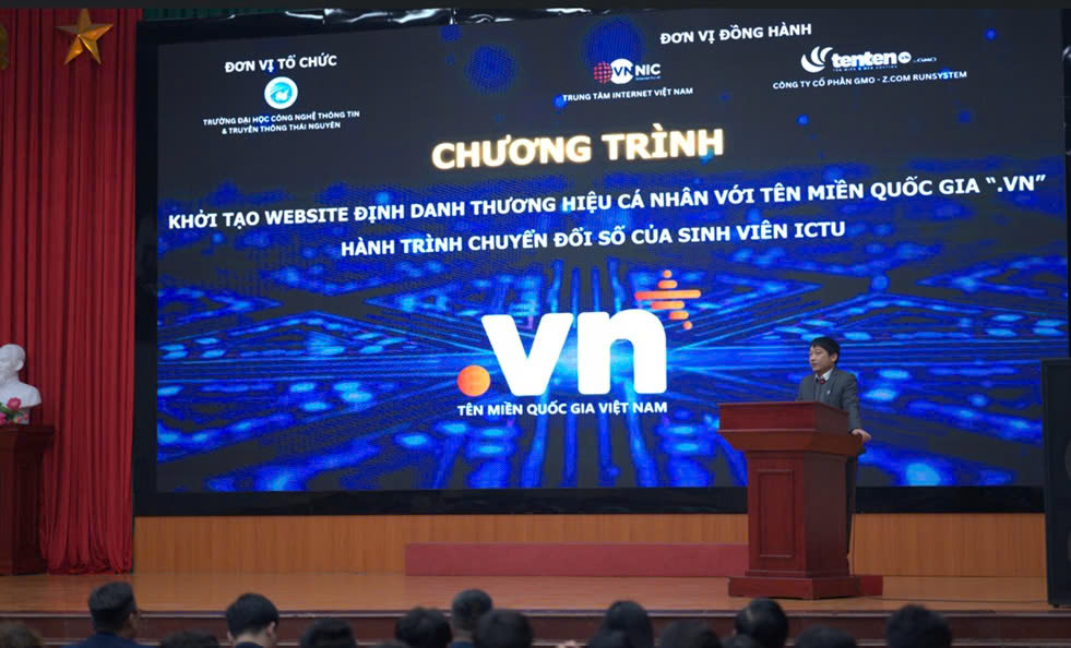 Bạn có biết rằng nhà tuyển dụng có thể tìm kiếm thông tin của bạn chỉ với một cú click chuột? Và nếu bạn không có dấu ấn số, rất có thể bạn sẽ bị bỏ lỡ những cơ hội quý giá! Để giúp sinh viên xây dựng thương hiệu cá nhân và phát triển sự nghiệp ngay từ khi còn ngồi trên ghế nhà trường, ngày 28/02/2025 và 03/03/2025, Trung tâm Internet Việt Nam (VNNIC) phối hợp cùng Trường Đại học Công nghệ Thông tin và Truyền thông Thái Nguyên (ICTU), Nhà đăng ký tên miền quốc gia Tenten.vn tổ chức chương trình tập huấn: Khởi tạo website định danh thương hiệu cá nhân với tên miền quốc gia .vn - Hành trình chuyển đổi số của sinh viên ICTU. Sự kiện đã thu hút 600 sinh viên tham dự, mang đến cho sinh viên cơ hội trải nghiệm xây dựng website thương hiệu cá nhân thông qua tên miền id.vn, ứng dụng công nghệ AI để phát triển nội dung số, thực chiến với những kiến thức về marketing để mở rộng cơ hội học tập, việc làm và khởi nghiệp trong kỷ nguyên số. Hoạt động nằm trong khuôn khổ Chương trình Hiện diện trực tuyến với tên miền quốc gia “.vn” miễn phí dành cho thanh niên, sinh viên theo Quyết định 826/QĐ-BTTTT ngày 21/5/2025 của Bộ Thông tin và Truyền thông đang được triển khai trên cả nước.