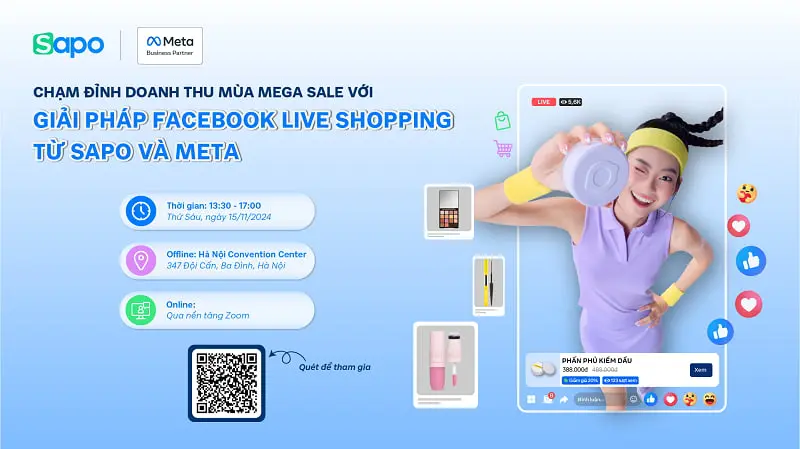 Tham dự sự kiện đặc biệt do Sapo và đối tác Meta tổ chức “Chạm đỉnh doanh thu mùa Mega Sale với Giải pháp Facebook Live Shopping hoàn toàn mới” giúp nhà bán hàng: