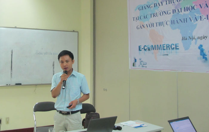 Tiếp sau đó là bài trình bày về Xây dựng và quản lý gian hàng trực tuyến của ông Nguyễn Văn Thoan – Trưởng Bộ môn Thương mại điện tử, Trường Đại học Ngoại thương.