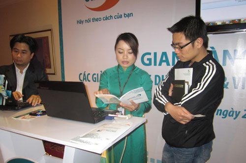 Viettel giới thiệu các giải pháp ứng dụng CNTT và viễn thông dành cho các doanh nghiệp và ngành giáo dục do Viettel cung cấp. Ảnh: M.Q