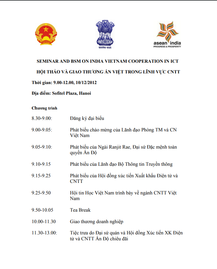 1. Thư của Đại sứ quán Ấn Độ gửi Hội Tin học Việt Nam
