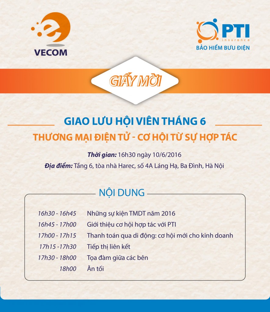 Đây chính là chủ đề buổi Giao lưu hội viên VECOM tháng 6 năm 2016. Buổi giao lưu lần này được tổ chức tại hội viên PTI – Tổng Công ty Cổ phần Bảo hiểm Bưu Điện: