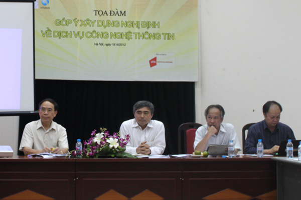 Ngày 18/04/2012, tại Hà Nội đã diễn ra buổi Tọa đàm góp ý cho dự thảo Nghị định về dịch vụ CNTT do Hội Tin học Việt Nam (VAIP) và Hiệp hội Phần mềm và Dịch vụ CNTT Việt Nam (VINASA) đồng tổ chức. Tham dự buổi tọa đàm có Thứ trưởng Bộ TT&TT Nguyễn Minh Hồng, đại diện Vụ Công nghệ thông tin – Bộ TT&TT, Chủ tịch VAIP Bùi Mạnh Hải và nhiều đại diện các cơ quan nhà nước, hiệp hội, tổ chức và doanh nghiệp.