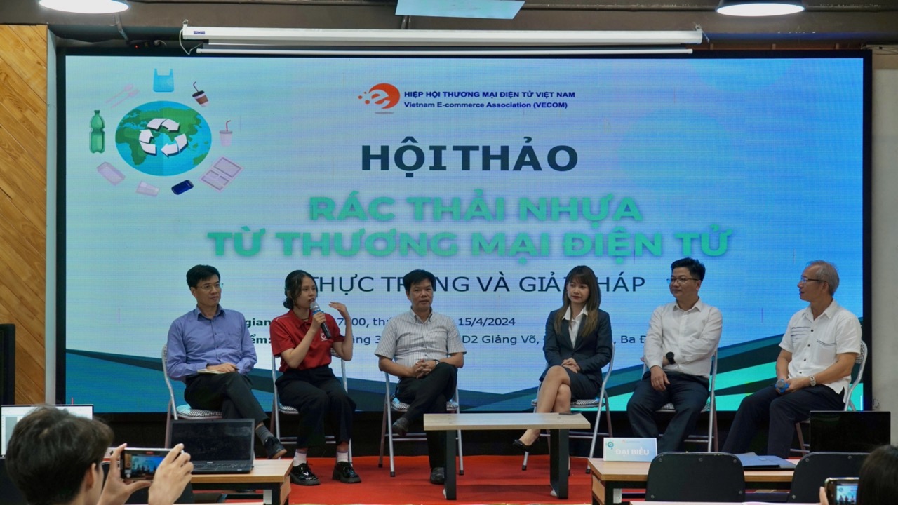 Hội thảo “Rác thải nhựa từ Thương mại điện tử – Thực trạng và Giải pháp” được tổ chức ngày 15/4/2024 nhằm trao đổi về thực trạng sử dụng bao bì, vật liệu nhựa cho thương mại điện tử. Hội thảo nhận được sự quan tâm cao của nhiều bên liên quan tới thương mại điện tử và môi trường, bao gồm các cơ quan quản lý nhà nước về thương mại điện tử và kinh tế số, logistics và bưu chính, môi trường cũng như các doanh nghiệp, các tổ chức nghiên cứu và đào tạo, các tổ chức quốc tế.