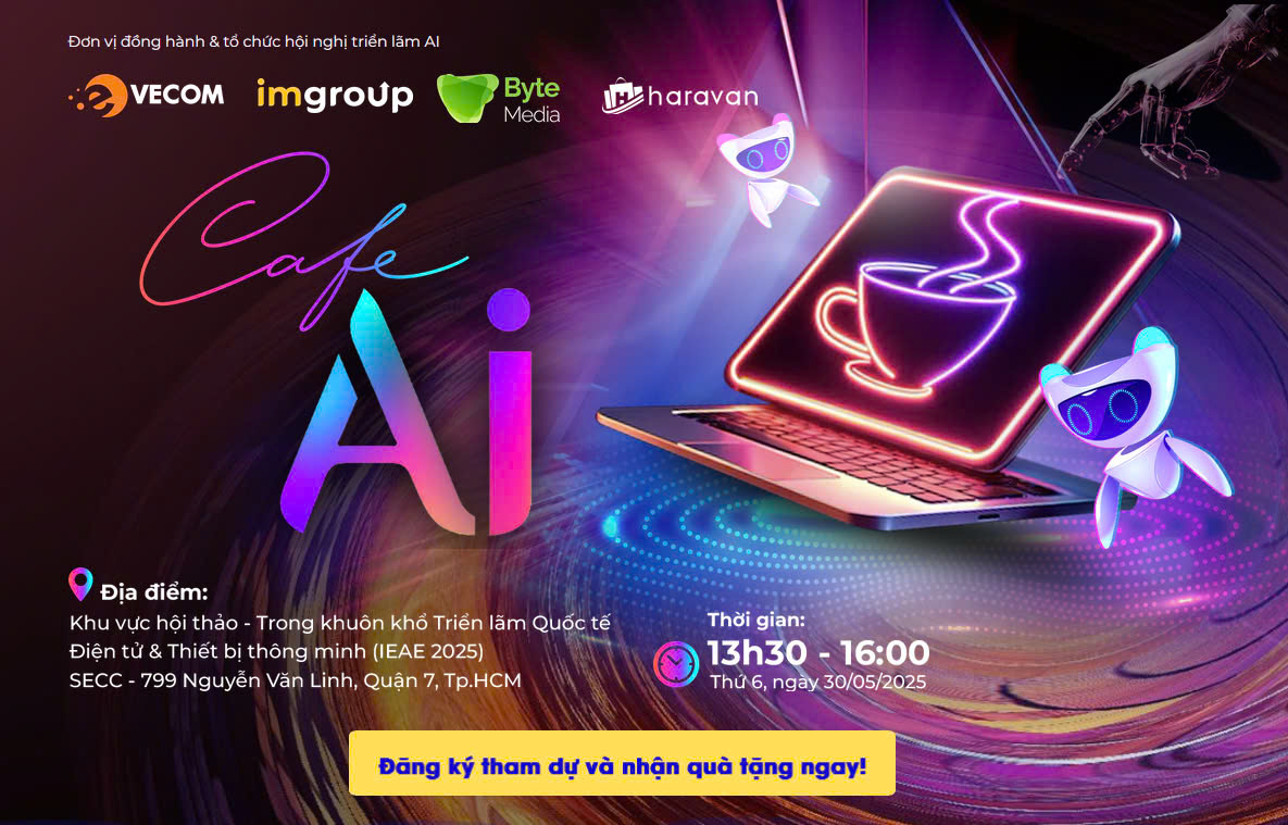 Workshop “Café AI tại IEAE 2025”, phối hợp tổ chức cùng Hiệp hội Thương mại Điện tử Việt Nam (VECOM) và IM Group, là không gian chia sẻ ứng dụng trí tuệ nhân tạo trong kinh doanh, giúp doanh nghiệp tối ưu vận hành và nâng cao hiệu suất trong kỷ nguyên số.