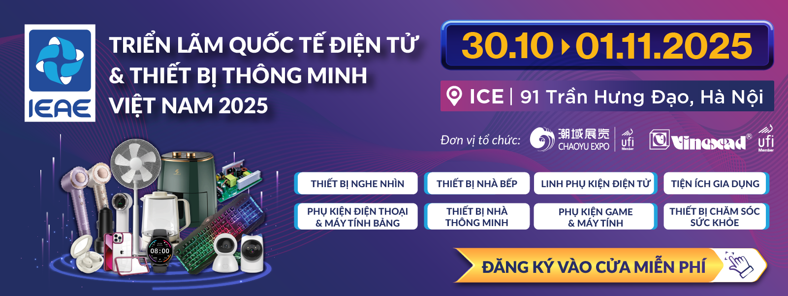 Triển lãm Quốc tế Điện tử và Thiết bị thông minh Việt Nam (IEAE) sẽ được tổ chức từ ngày 30 tháng 10 đến ngày 01 tháng 11 năm 2025 tại Trung tâm Triển lãm Quốc tế Hà Nội (I.C.E).