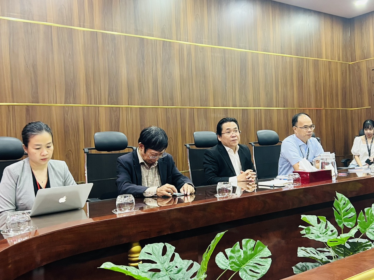 Ông Ngô Minh Đức – Trưởng Đoàn công tác của VECOM, đã nhấn mạnh sự quan tâm và ủng hộ mạnh mẽ của Hiệp hội cũng như các doanh nghiệp hội viên đối với hoạt động phát triển nguồn nhân lực tại các trường đại học. Ông Nguyễn Tấn Phong – Trưởng ban Kiểm tra, ông Phạm Sơn Tùng – Phó ban Hợp tác cùng đại diện của Mắt Bão và Haravan đã giới thiệu các hoạt động đã triển khai hỗ trợ các trường đại học và bày tỏ sự sẵn sàng tiếp tục ủng hộ trong giai đoạn tới.