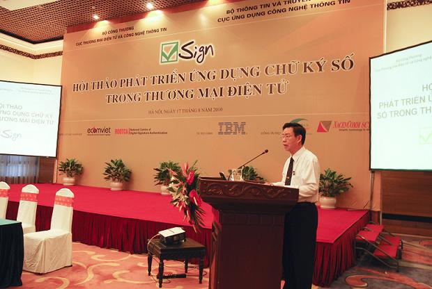 Phát biểu khai mạc hội thảo, Thứ trưởng Bộ Công Thương Lê Danh Vĩnh cho biết: “Mặc dù còn khá mới mẻ đối với phần lớn các doanh nghiệp Việt Nam, chữ ký số lại đóng vai trò hết sức quan trọng đối với tương lai của thương mại điện tử và chính phủ điện tử trong bối cảnh hội nhập kinh tế thế giới như hiện nay”.