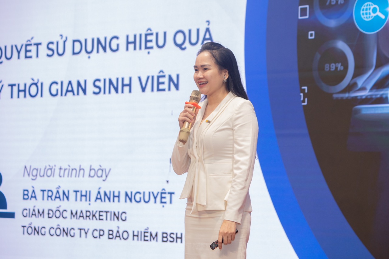 Với bài chia sẻ “Bí quyết tận dụng hiệu quả quỹ thời gian Sinh viên” tại Unitour ở hai trường, Bà Trần Thị Ánh Nguyệt, Giám đốc Marketing của Tổng công ty Bảo hiểm Sài Gòn – Hà Nội (BSH), đã chia sẻ những bí quyết quý giá giúp sinh viên tận dụng hiệu quả quỹ thời gian của mình. Bà nhấn mạnh tầm quan trọng của việc lập kế hoạch cụ thể và ưu tiên các hoạt động học tập, rèn luyện kỹ năng cũng như tham gia các hoạt động ngoại khoá. Bằng những phương pháp thực tiễn và dễ áp dụng, Bà Nguyệt đã khuyến khích sinh viên không chỉ nâng cao hiệu suất học tập mà còn phát triển bản thân một cách toàn diện.