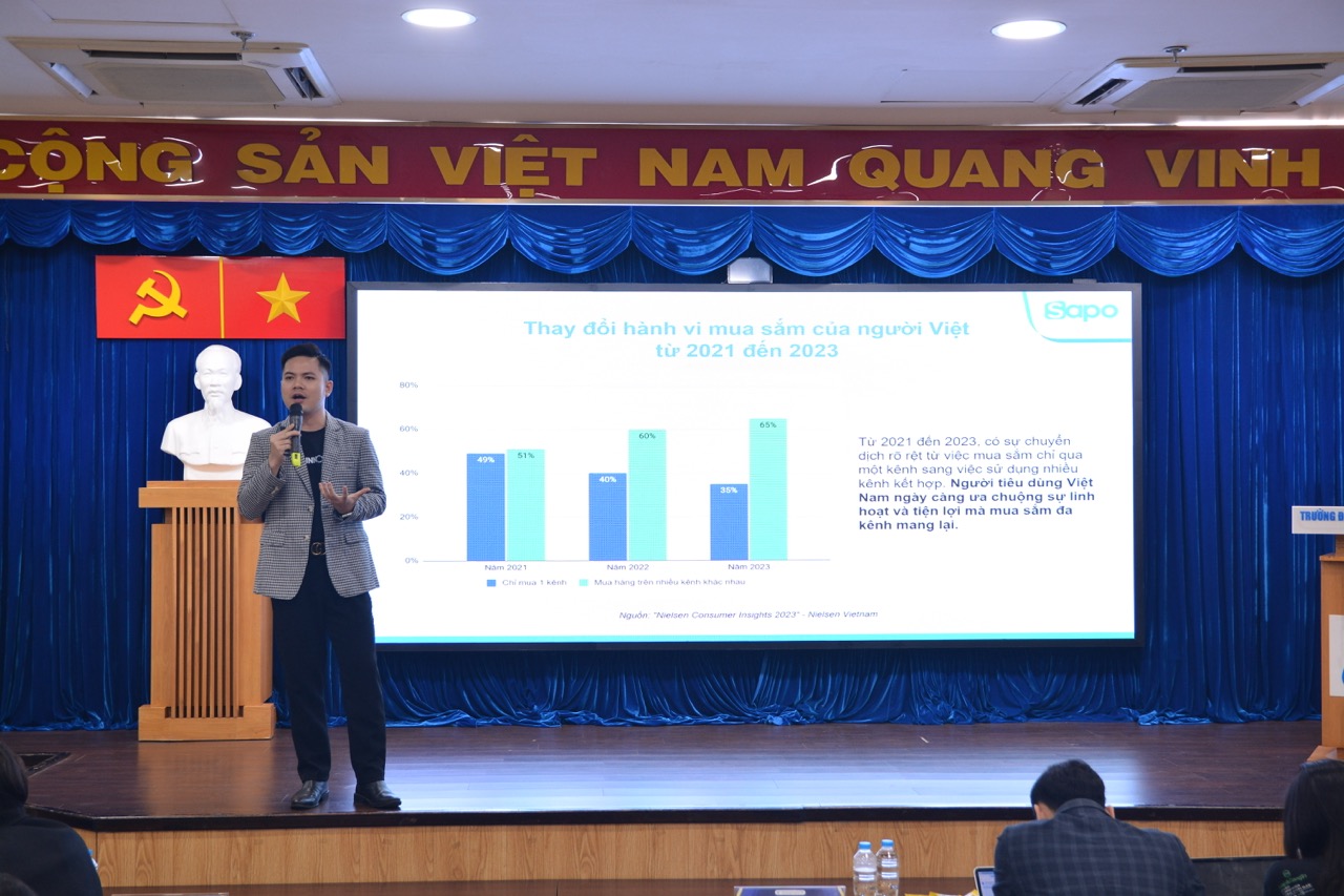 Theo Ông Nguyễn Mạnh Đông, L&D Specialist, SAPO, kiến thức chuyên môn về TMĐT là yếu tố hàng đầu. Sinh viên cần nắm vững các khái niệm cơ bản như SEO, marketing kỹ thuật số và phân tích dữ liệu. Bên cạnh đó, kỹ năng thực hành thông qua các dự án hoặc thực tập sẽ giúp sinh viên áp dụng lý thuyết vào thực tế. Chị cũng nhấn mạnh tầm quan trọng của kỹ năng phân tích dữ liệu và khả năng làm việc nhóm, vì đây là những kỹ năng cần thiết để đưa ra quyết định chiến lược trong môi trường TMĐT năng động. Kỹ năng giao tiếp hiệu quả và thái độ tích cực, cầu tiến cũng là những điểm cộng lớn trong mắt nhà tuyển dụng. Cuối cùng, việc mở rộng mạng lưới quan hệ và tham gia các hoạt động kết nối trong ngành sẽ giúp sinh viên tìm kiếm nhiều cơ hội việc làm hơn. Những chia sẻ từ Anh Đông chắc chắn sẽ là nguồn cảm hứng quý giá cho các bạn sinh viên trong hành trình chinh phục lĩnh vực TMĐT.