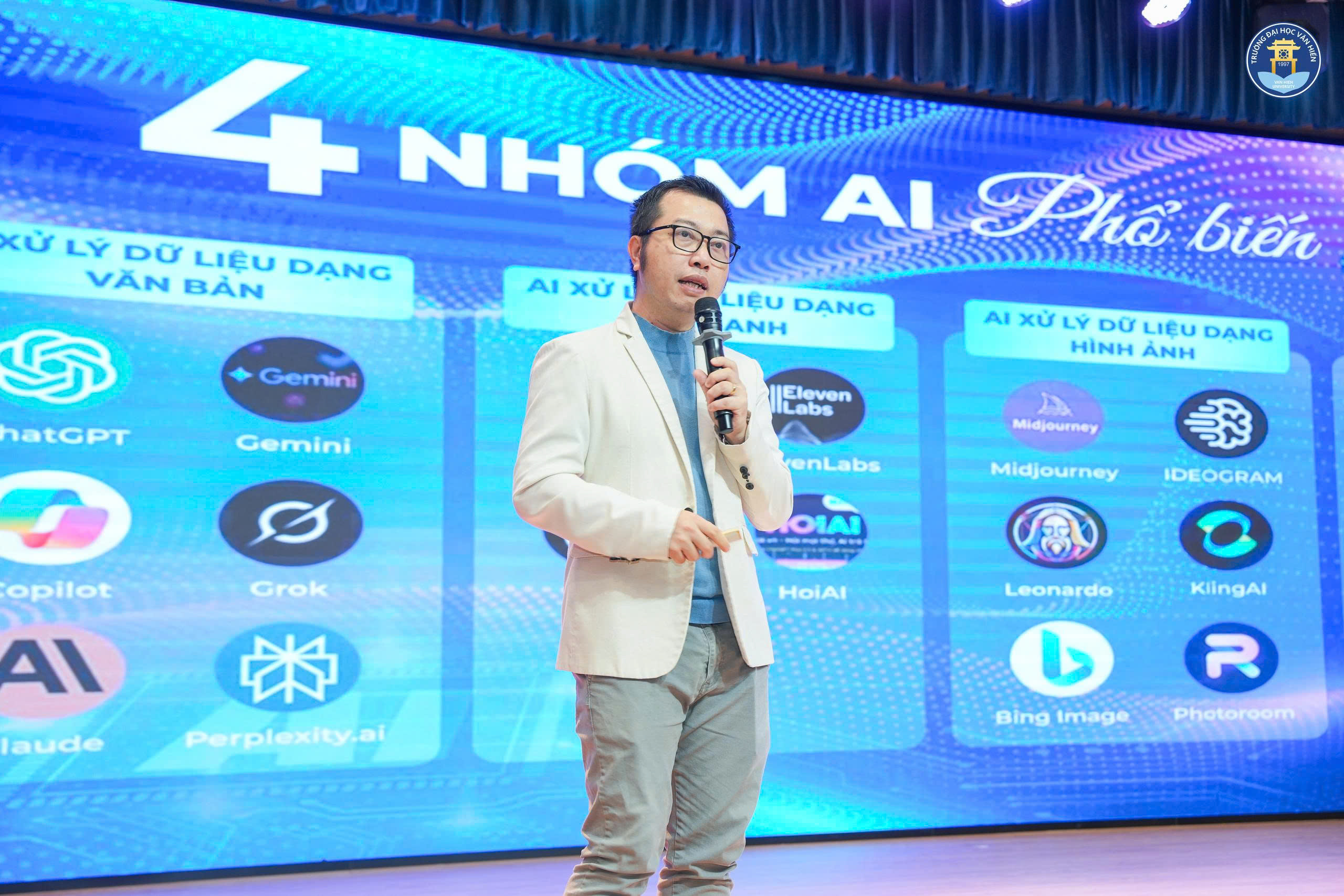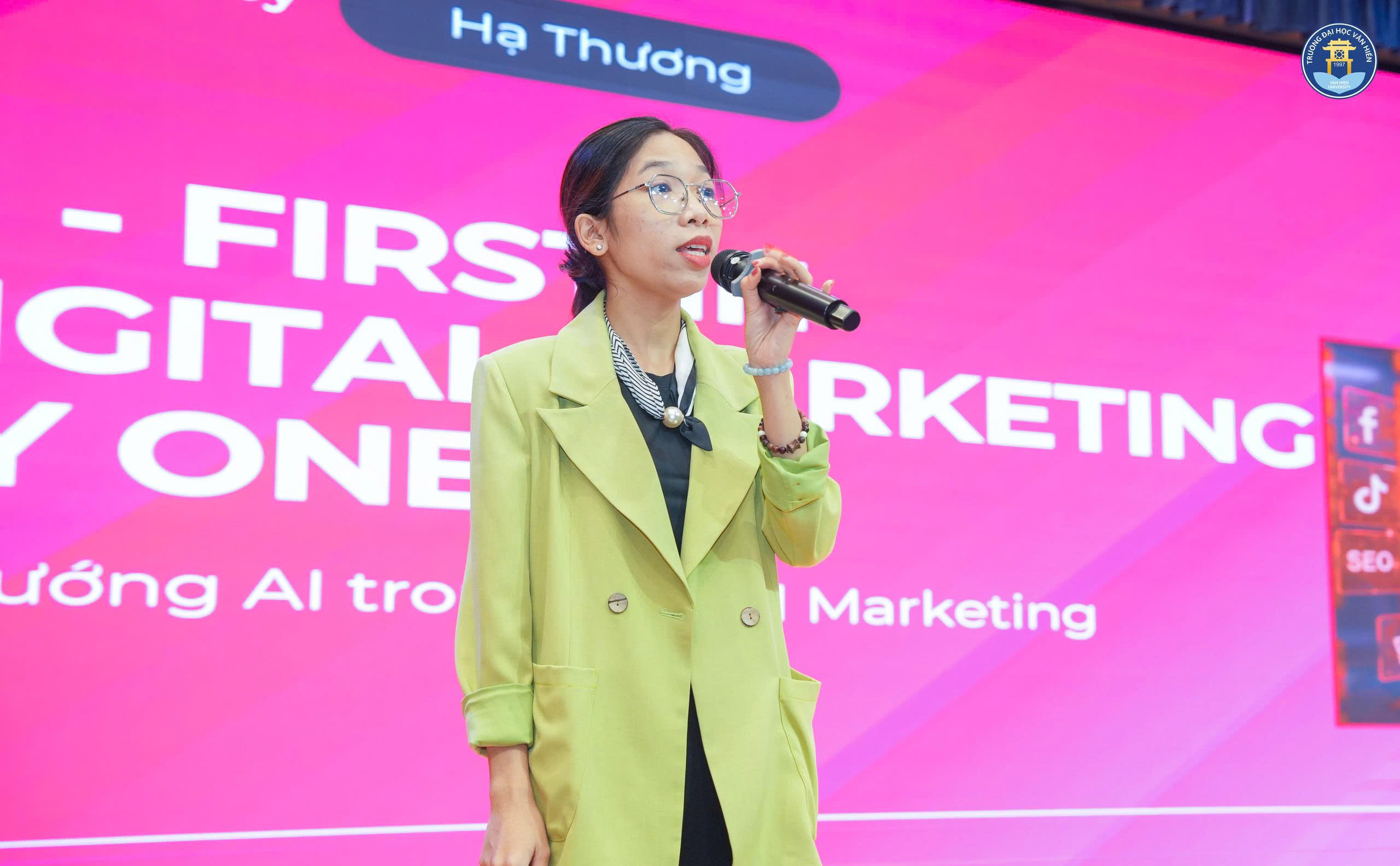 Chị Hạ Thương mang đến bài chia sẻ “Xu hướng AI và Digital Marketing”, giúp sinh viên hiểu rõ hơn cách trí tuệ nhân tạo đang định hình lại ngành tiếp thị số: AI không thay thế con người, nhưng những ai biết sử dụng AI sẽ thay thế người không biết. Hãy chủ động học và trải nghiệm sớm.
