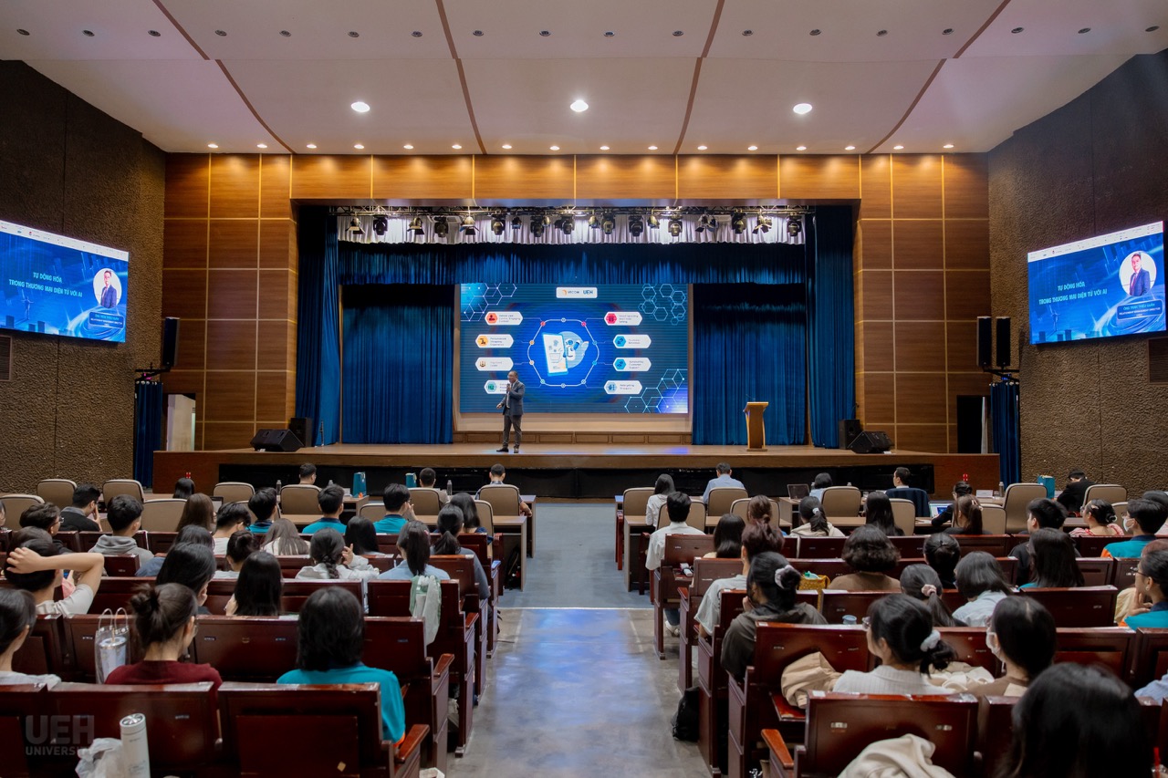 Mở đầu chương trình, GS.TS. Nguyễn Khắc Quốc Bảo - Chủ tịch Hội đồng Đại học Kinh tế thành phố Hồ Chí Minh đã phát biểu chào mừng, nhấn mạnh vai trò của việc cập nhật kiến thức và tư duy số trong việc chuẩn bị cho tương lai nghề nghiệp của sinh viên.