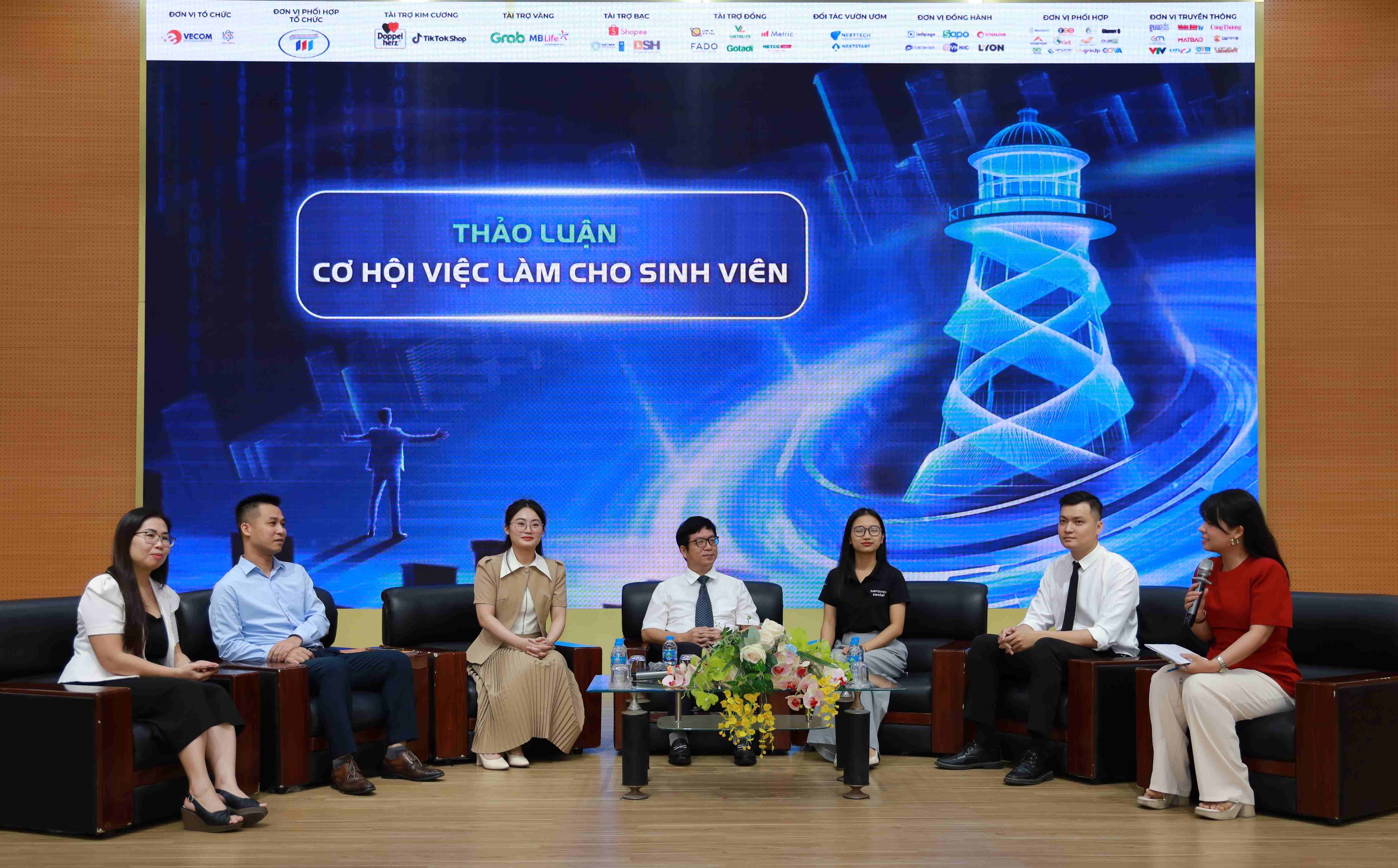Phần thảo luận đã khép lại trong không khí sôi nổi, để lại nhiều góc nhìn thực tế và truyền cảm hứng mạnh mẽ cho các bạn sinh viên. Những chia sẻ từ các diễn giả không chỉ mở ra bức tranh toàn cảnh về xu hướng kinh doanh số, cơ hội việc làm và cách tận dụng nền tảng số để phát triển sự nghiệp, mà còn khẳng định tinh thần dám nghĩ – dám làm của thế hệ trẻ trong kỷ nguyên công nghệ. Qua đó, sinh viên có thêm hành trang về kiến thức, kỹ năng và tư duy để chủ động nắm bắt thời cơ, khẳng định bản thân và sẵn sàng bước vào thị trường lao động đầy cạnh tranh nhưng cũng vô cùng rộng mở.