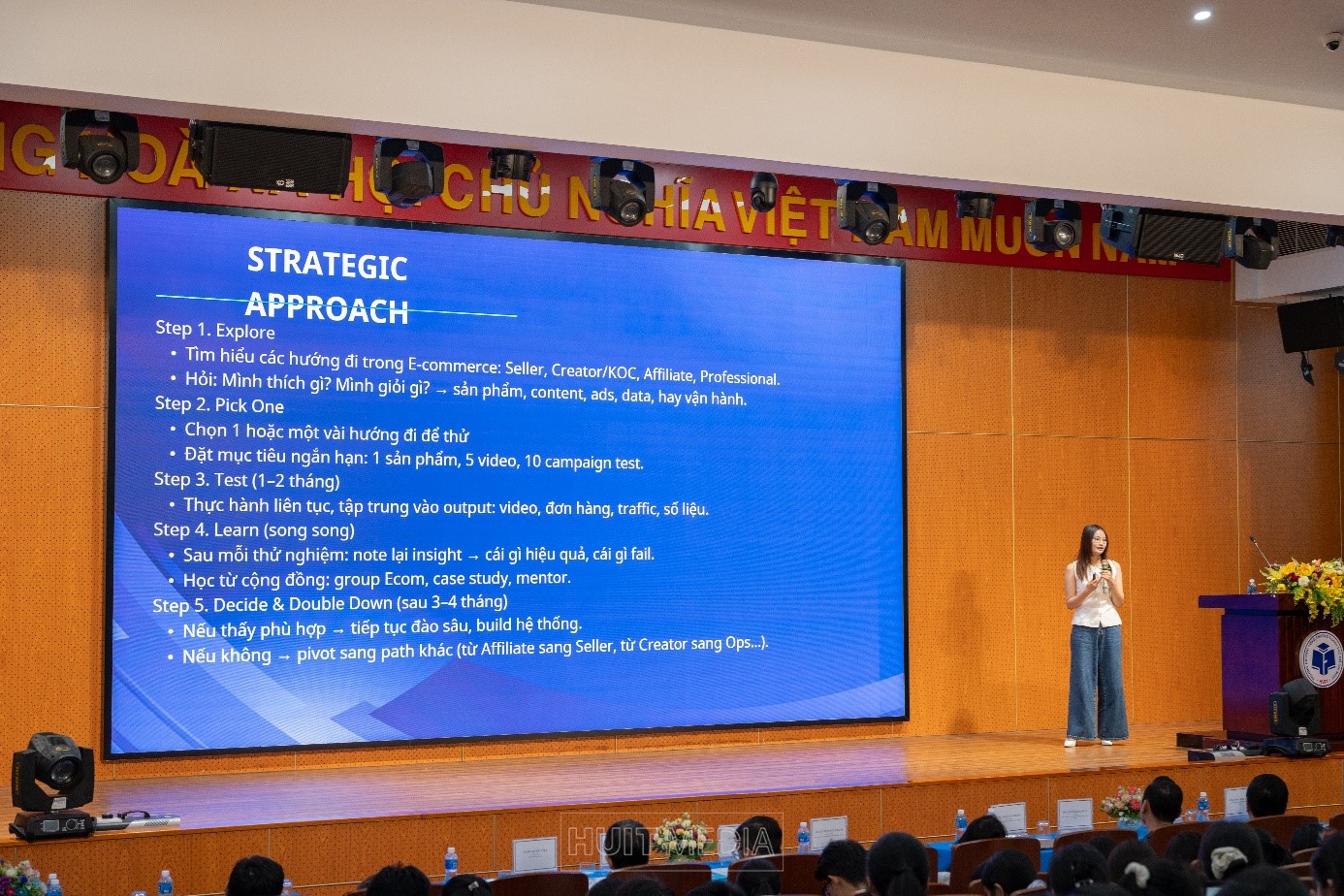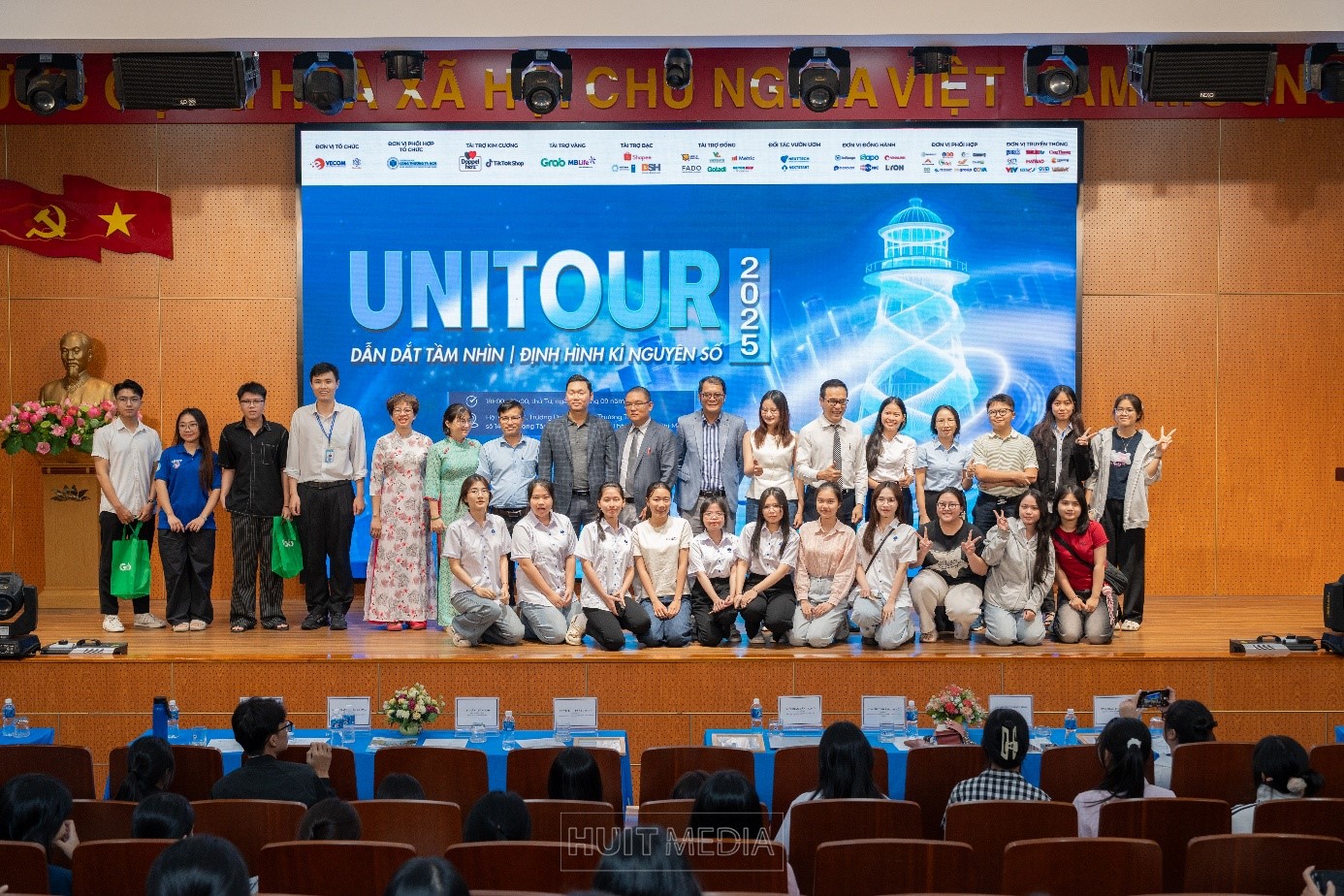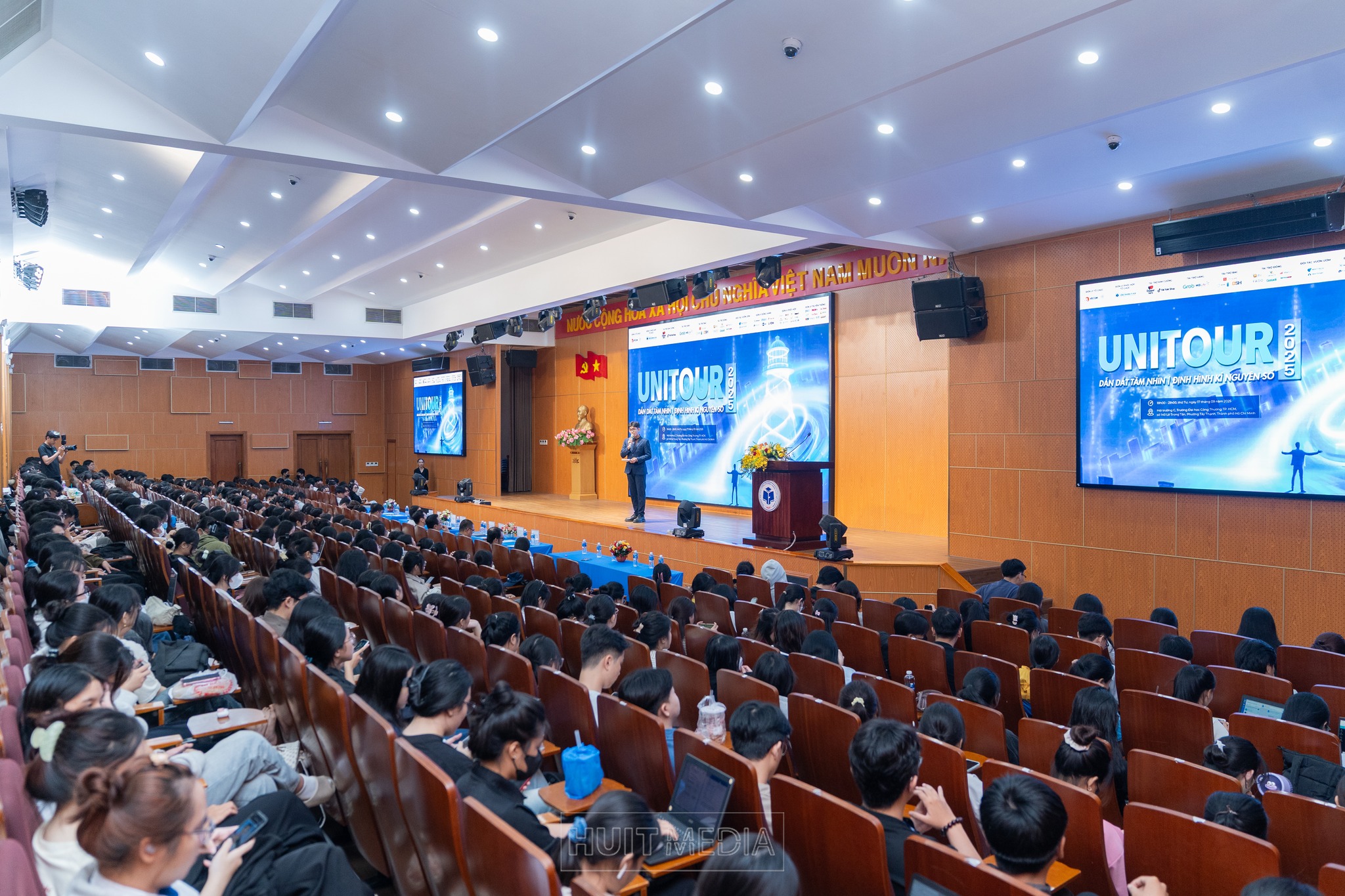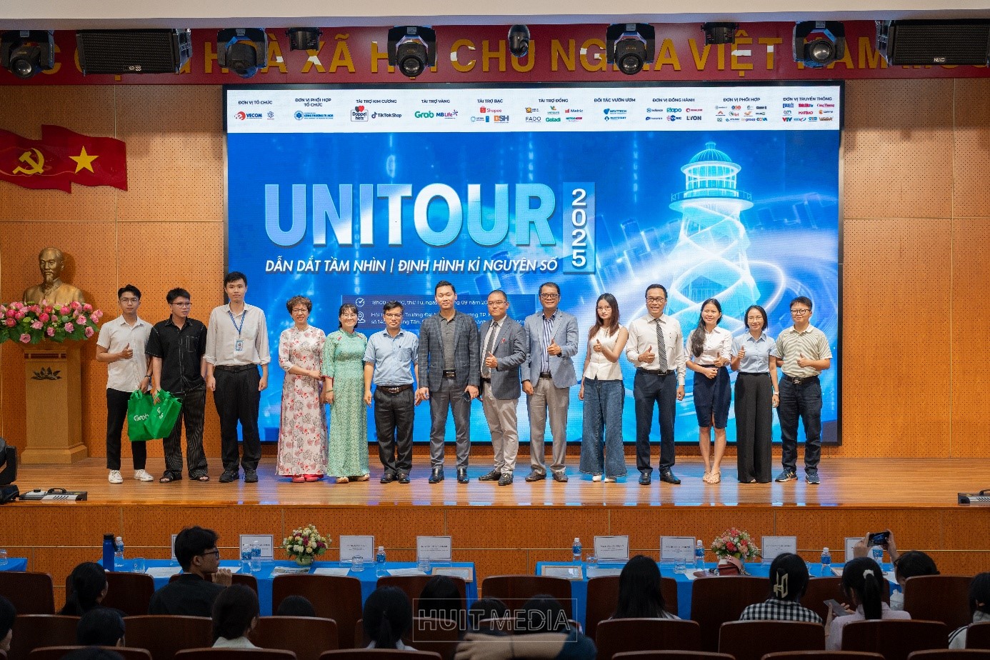 Chiều ngày 17/09/2025, tại Trường Đại học Công Thương TP.HCM (HUIT), chương trình Unitour 2025 đã diễn ra, thu hút gần 500 sinh viên tham dự. Dưới sự phối hợp tổ chức của Hiệp hội Thương mại điện tử Việt Nam (VECOM) và Mạng lưới Các cơ sở đào tạo Thương mại điện tử (VECOMNET) cùng Trường Đại học Công Thương TPHCM (HUIT), sự kiện lần này với chủ đề “Dẫn dắt tầm nhìn, định hình kỷ nguyên số” nằm trong khuôn khổ chuỗi hoạt động của Cuộc thi Sinh viên Kinh doanh số (DBC 2025).