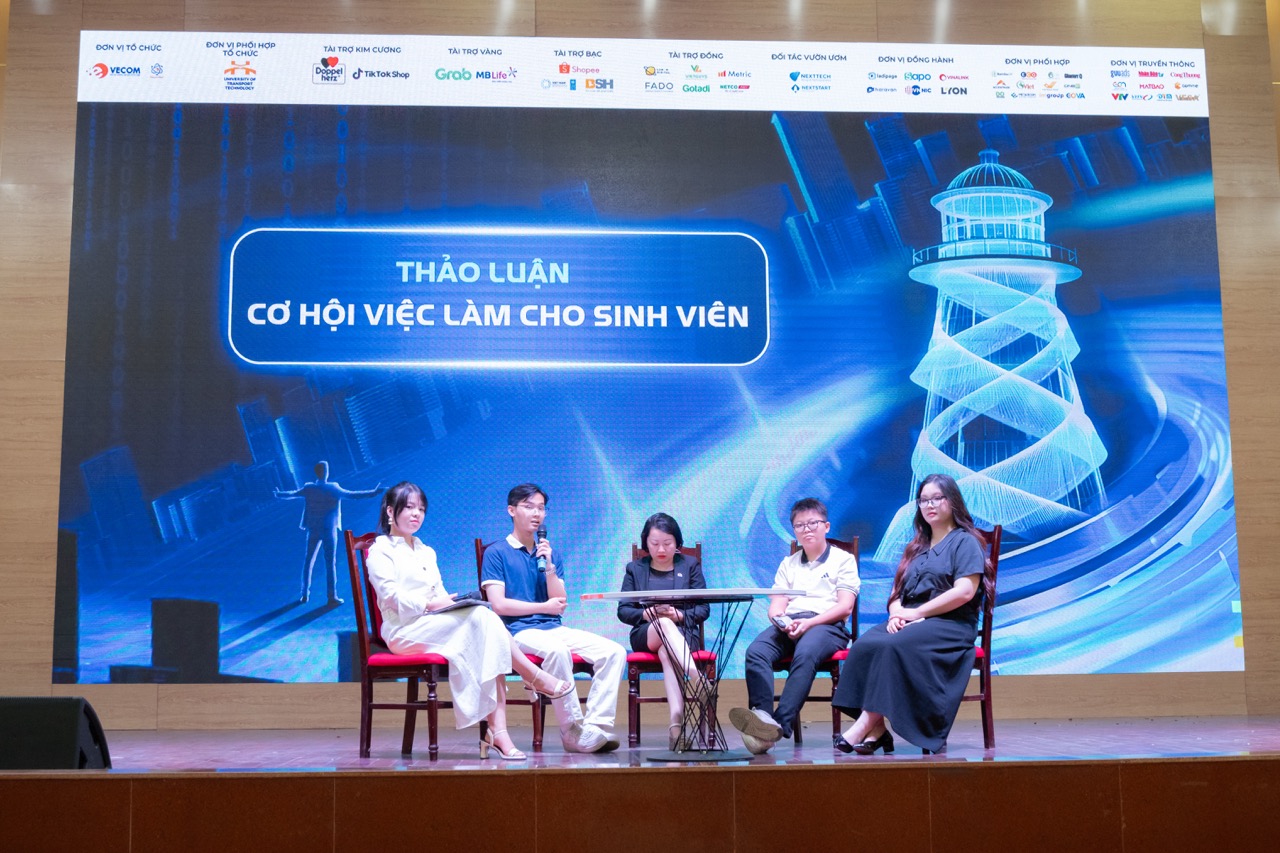 Tiếp nối phần khai mạc, chương trình mang đến các phiên chia sẻ chuyên sâu và tọa đàm ngắn với sự tham gia của các diễn giả khách mời. Sinh viên có cơ hội đặt câu hỏi, thảo luận về nhiều vấn đề quan trọng: hành trình khởi nghiệp trong lĩnh vực công nghệ, cách xây dựng nội dung số hấp dẫn, cũng như kỹ năng cần thiết để bắt kịp tốc độ phát triển của kỷ nguyên số.
