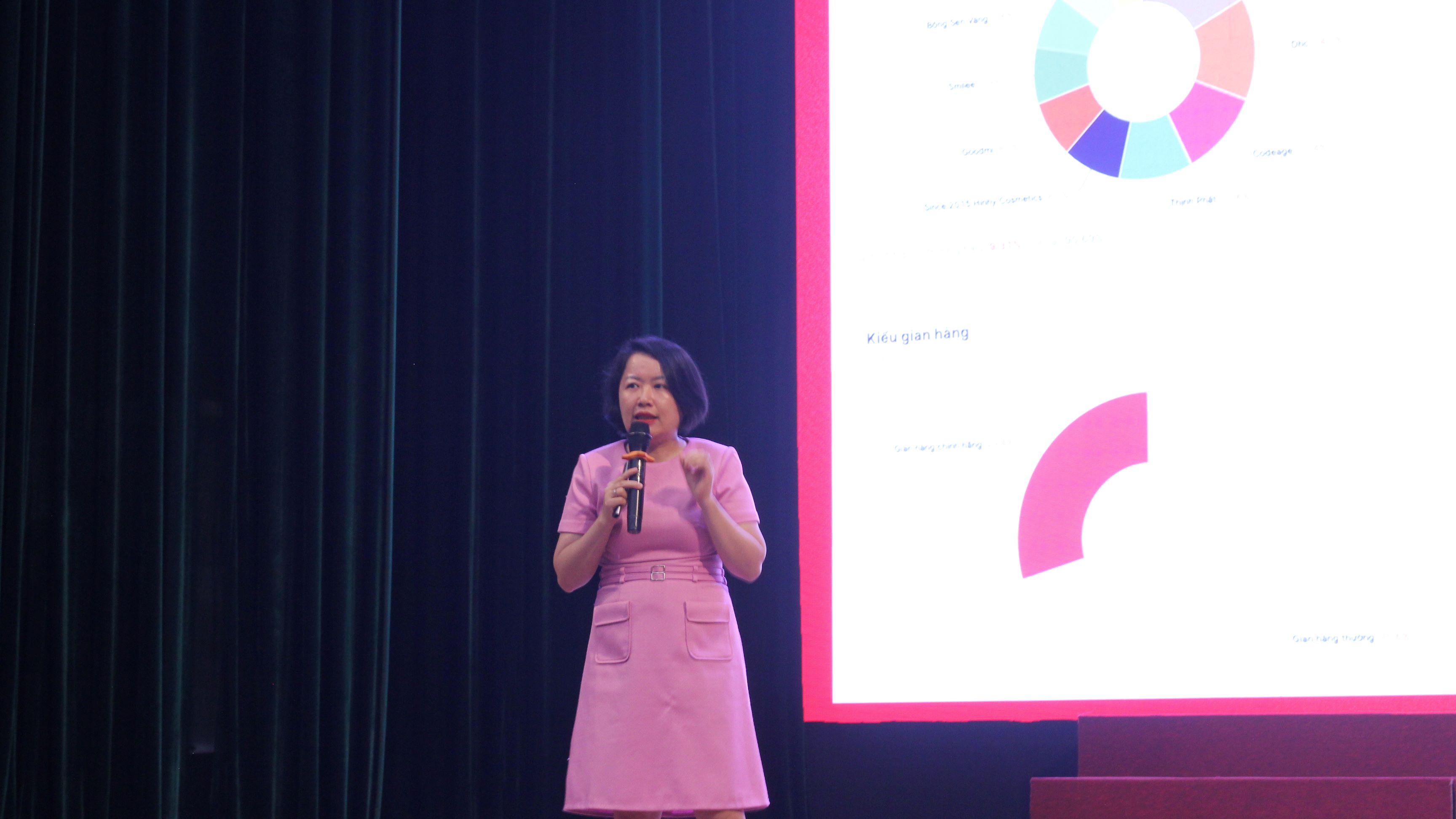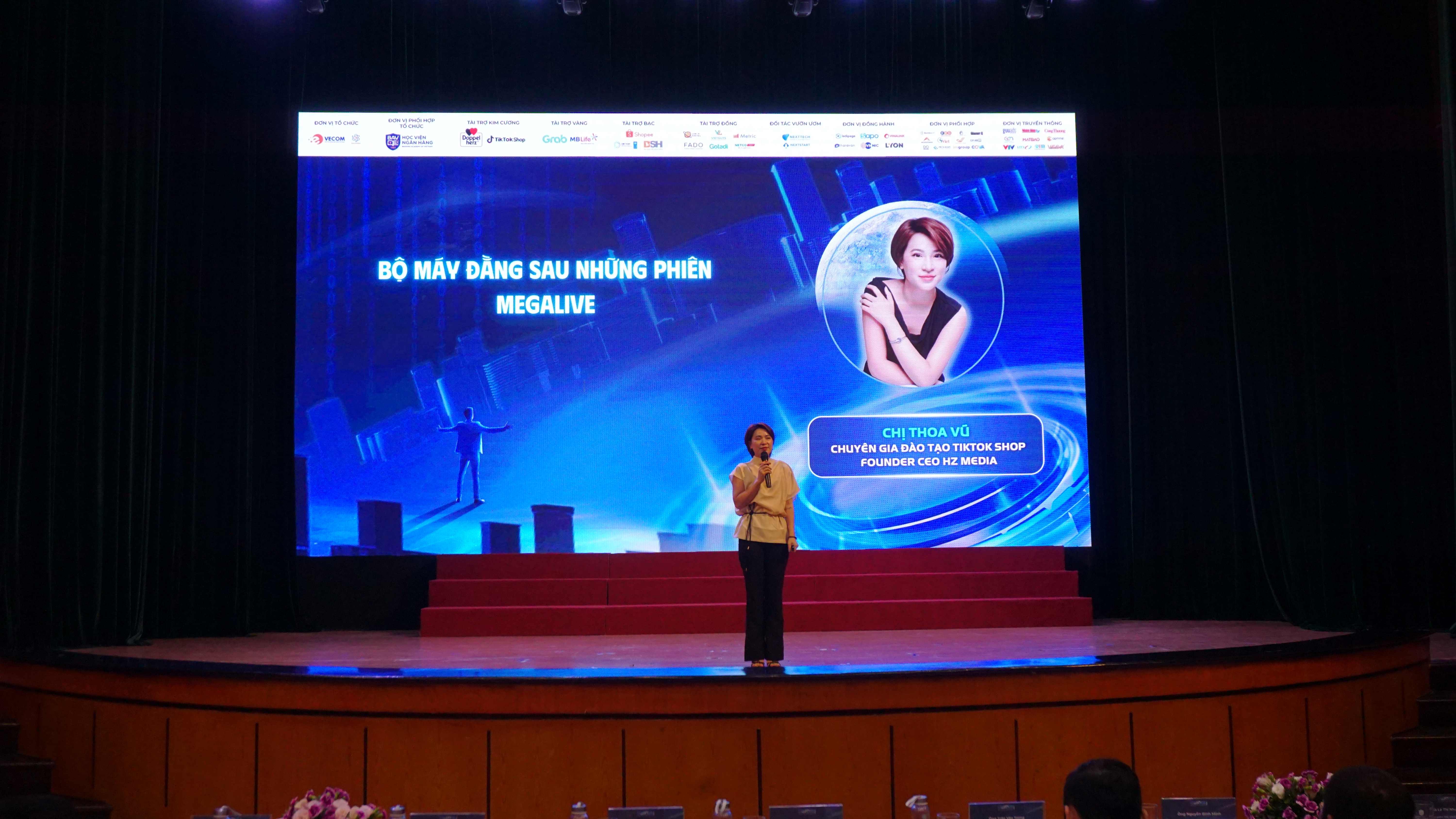 Chị Thoa Vũ Chuyên gia đào tạo TikTok Shop, Founder CEO Hz Media đã “bật mí” phía sau ánh hào quang của những buổi megalive triệu view là cả một hệ thống vận hành chuyên nghiệp: từ kịch bản nội dung, đội ngũ sản xuất, kỹ thuật, đến chiến lược tiếp thị. Qua đó, chị giúp sinh viên nhận ra livestream không chỉ đơn thuần là bán hàng trực tuyến mà đã trở thành một ngành công nghiệp đầy tiềm năng việc làm, đòi hỏi sự phối hợp giữa nhiều vị trí khác nhau. Đây là lĩnh vực mới mẻ, sáng tạo và giàu cơ hội cho các bạn trẻ dám thử sức.