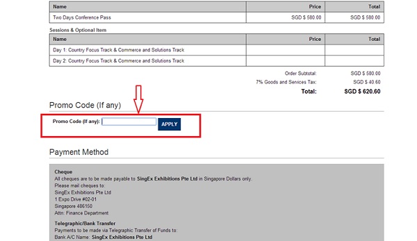 + Đối với đăng ký tham dự Hội thảo: Điền mã ưu đãi APO10-VECOM (dành cho doanh nghiệp đăng ký qua VECOM) vào mục Promo Code: