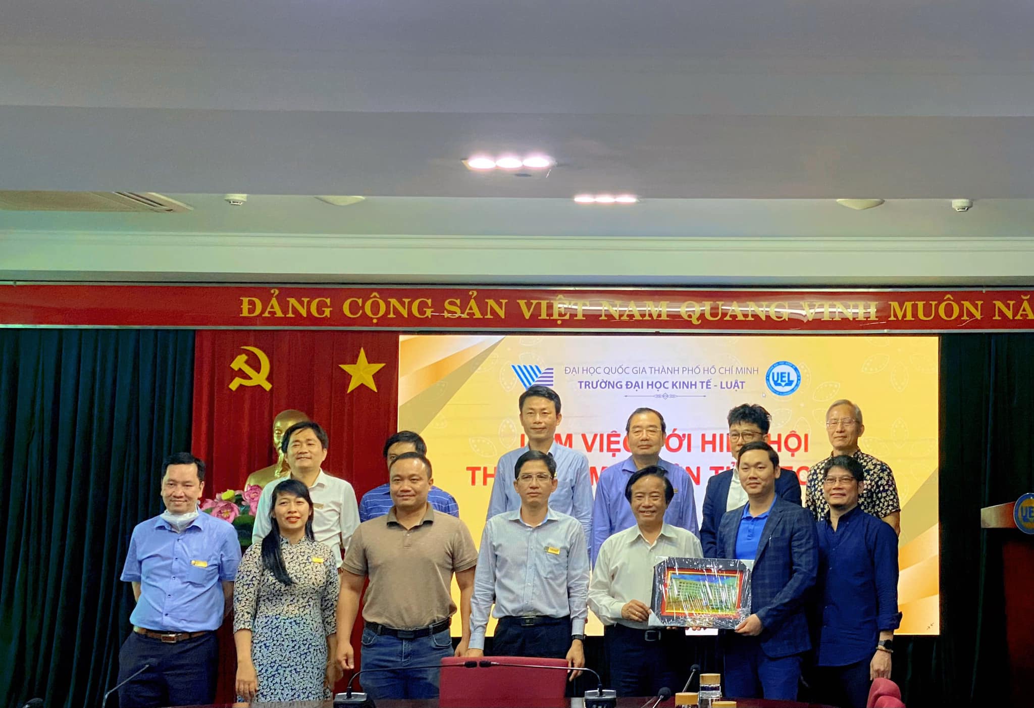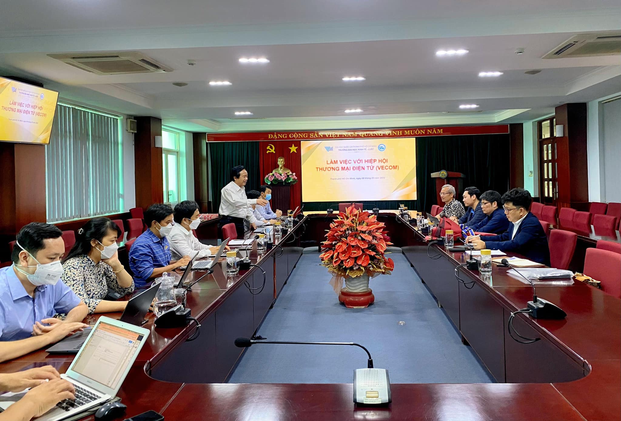 Buổi công tác, khảo sát về thực trạng TMĐT của trường Đại Học Kinh Tế - Luật, Đại Học Quốc Gia Thành Phố Hồ Chí Minh. Có sự tham gia của thầy Hiệu trưởng PGS.TS Nguyễn Tiến Dũng, Ông Trần Văn Trọng - Chủ tịch VECOM, ông Nguyễn Thanh Hưng - Thành viên Hội đồng Tư vấn về TMĐT và cùng một số giảng viên, cán bộ của Trường.