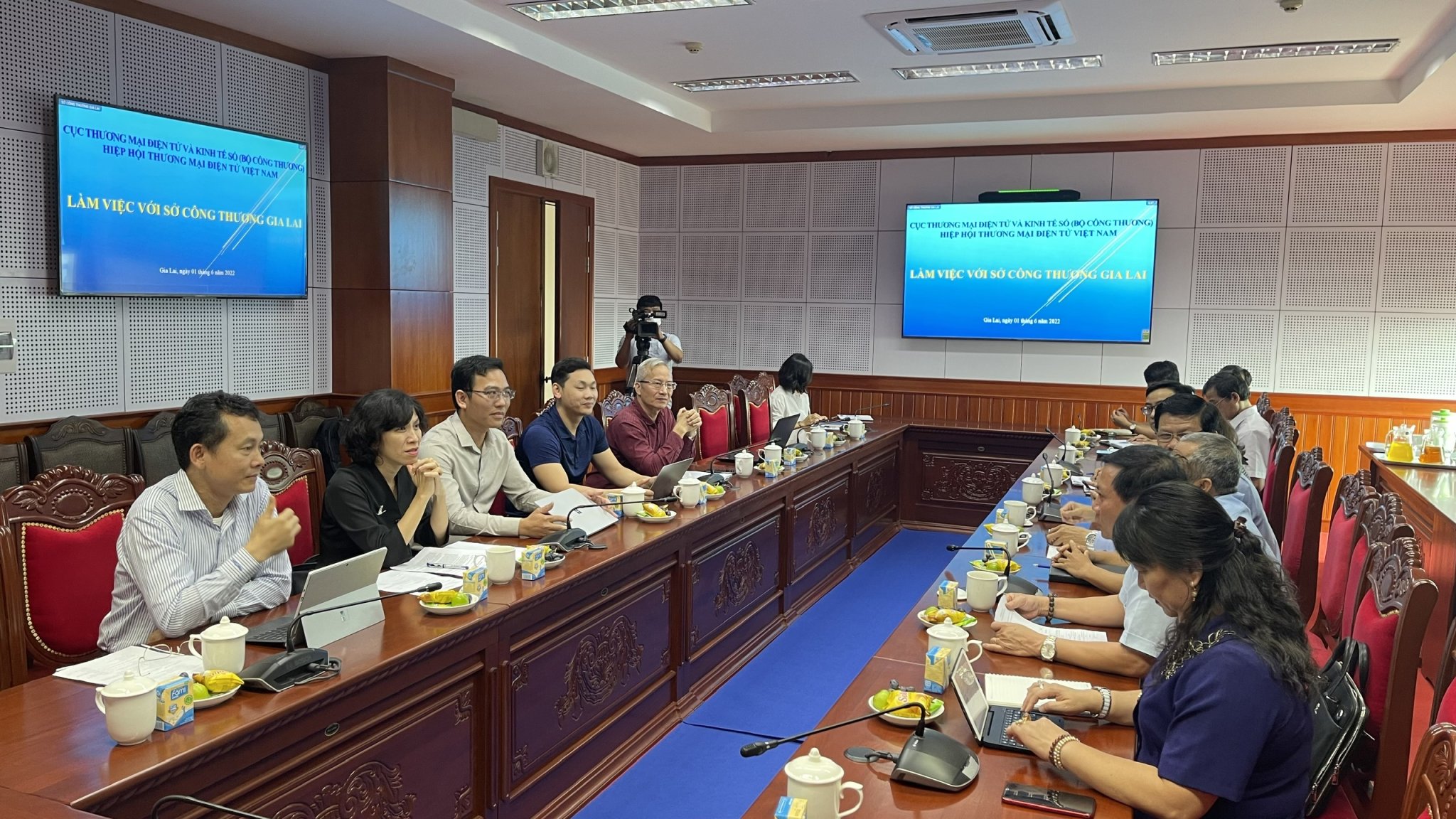 Ngày 01/6/2022, Hiệp hội Thương mại điện tử Việt Nam và Cục Thương mại điện tử và Kinh tế số đã có buổi làm việc với SCT tỉnh Gia Lai. Nhằm nắm bắt tình chung về thực trạng TMĐT của tỉnh Gia Lai, đề xuất một số hoạt động phối hợp nhằm đẩy mạnh việc ứng dụng TMĐT trong kinh doanh của địa phương.