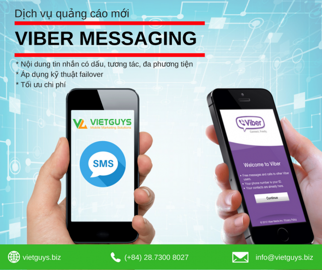 Ngày nay, Mobile Marketing là một trong số các kênh marketing quan trọng để chăm sóc khách hàng, triển khai các chương trình marketing và quảng bá sản phẩm, dịch vụ. Nhằm mang đến cho khách hàng các giải pháp tiếp thị trên di động tối ưu nhất, công ty VietGuys – Mobile Marketing Solutions giới thiệu dịch vụ mới với tên gọi Viber Messaging (OTT-SMS). Đây là xu hướng cũng như chiến lược tiếp cận khách hàng mới đầy tiềm năng, hiệu quả cả về chất lượng và chi phí.