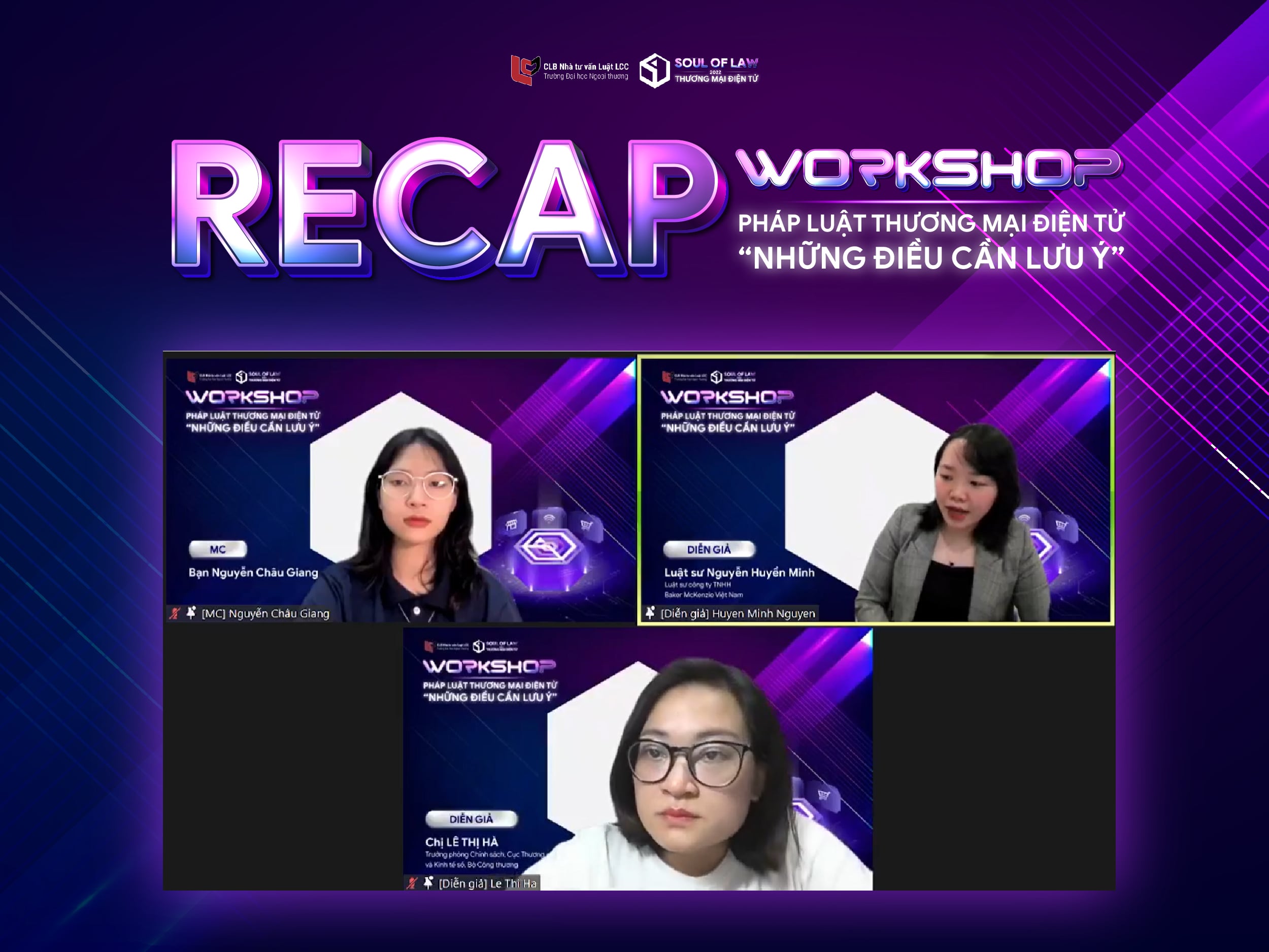 Soul of Law là một trong những cuộc thi lớn nhất về chủ đề Kinh tế - Pháp luật do CLB Nhà tư vấn Luật (LCC) - trường Đại học Ngoại thương tổ chức. Trong khuôn khổ của cuộc thi, ngày 10/05/2022 vừa qua, workshop với chủ đề: “Pháp luật thương mại điện tử - Những điều cần lưu ý” đã diễn ra thành công cùng sự tham gia của hai vị diễn giả, chị Lê Thị Hà - Trưởng phòng Chính sách, Cục Thương mại điện tử và Kinh tế số, Bộ Công thương và Luật sư Nguyễn Huyền Minh - Luật sư Công ty Luật TNHH Baker McKenzie Việt Nam.