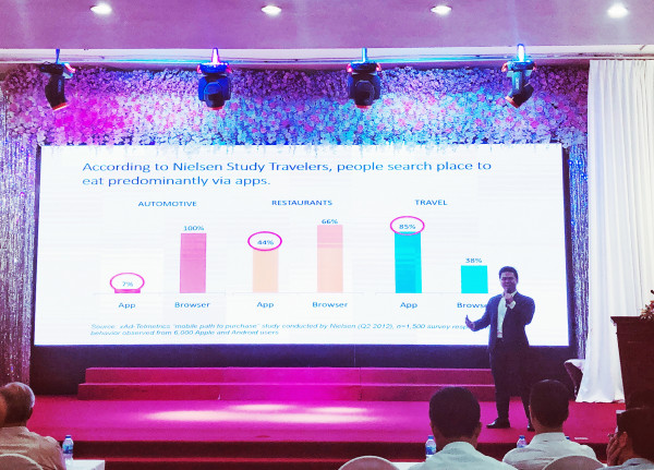 Phát biểu khai mạc, Ông Nguyễn Thanh Hưng – Chủ tich Hiệp hội Thương mại điện tử Việt Nam (VECOM) cho biết theo Báo cáo của Tổ chức du lịch thế giới: xu hướng du lịch hiện nay hay hành vi của du khách hiện nay đã bước sang một giai đoạn mới được gọi là “Khách du lịch kết nối”, khách du lịch họ chủ động từ khâu tìm điểm đến, tìm tour, tìm khách sạn, họ cũng rất chủ động đăng những bình luận, đánh giá về khách sạn, tour lữ hành và các đánh giá này được người đi sau tin cậy hơn cả thông tin từ các hãng chuyên khảo sát, xếp hạng, đánh giá du lịch. Những điều này cho thấy, một thời kỳ mới của kinh doanh du lịch đã khởi đầu.