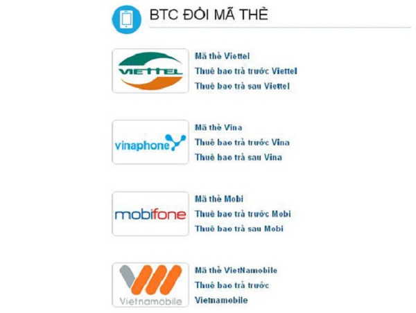 Hiện địa chỉ này cho phép nạp thẻ từ 4 doanh nghiệp viễn thông Viettel, VinaPhone, MobiFone và Vietnamobile với các loại mệnh giá đang được bán trên thị trường.