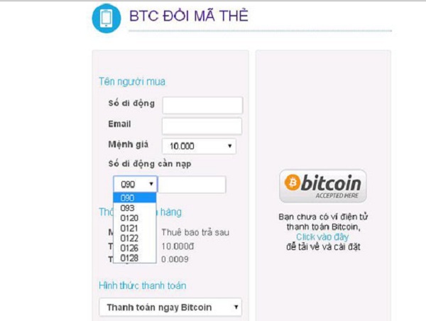 Giao dịch đổi Bitcoin thành thẻ điện thoại